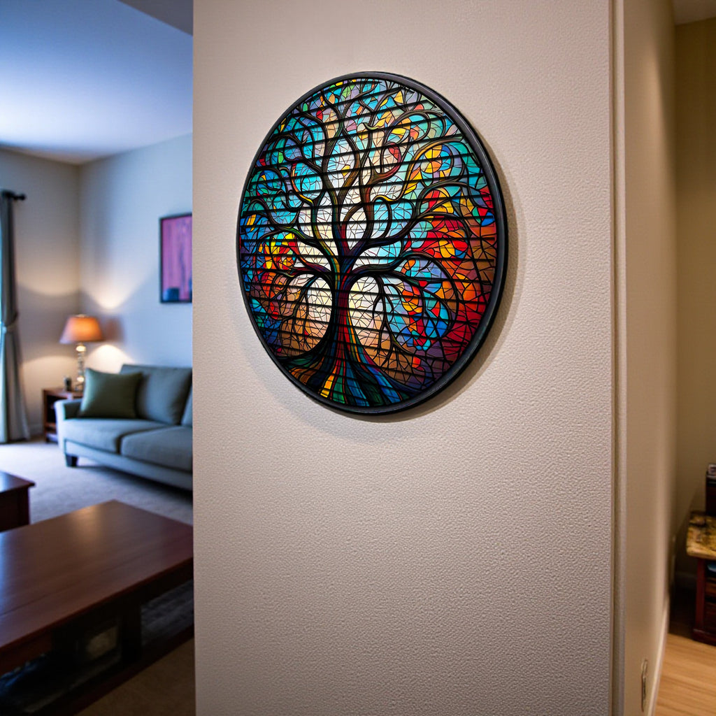 The Floating Effect Designed to stand out—literally. The hidden metal hanging apparatus on the back holds the artwork 0.8” (2cm) away from the wall. This creates a sophisticated "floating" shadow effect that gives the circle a suspended appearance.