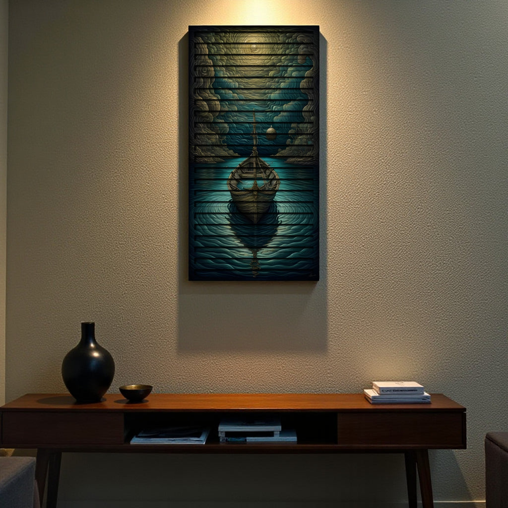 The Floating Effect Designed to stand out—literally. The hidden metal hanging apparatus on the back holds the artwork 0.8” (2cm) away from the wall. This creates a sophisticated "floating" shadow effect that changes with the lighting in your room.