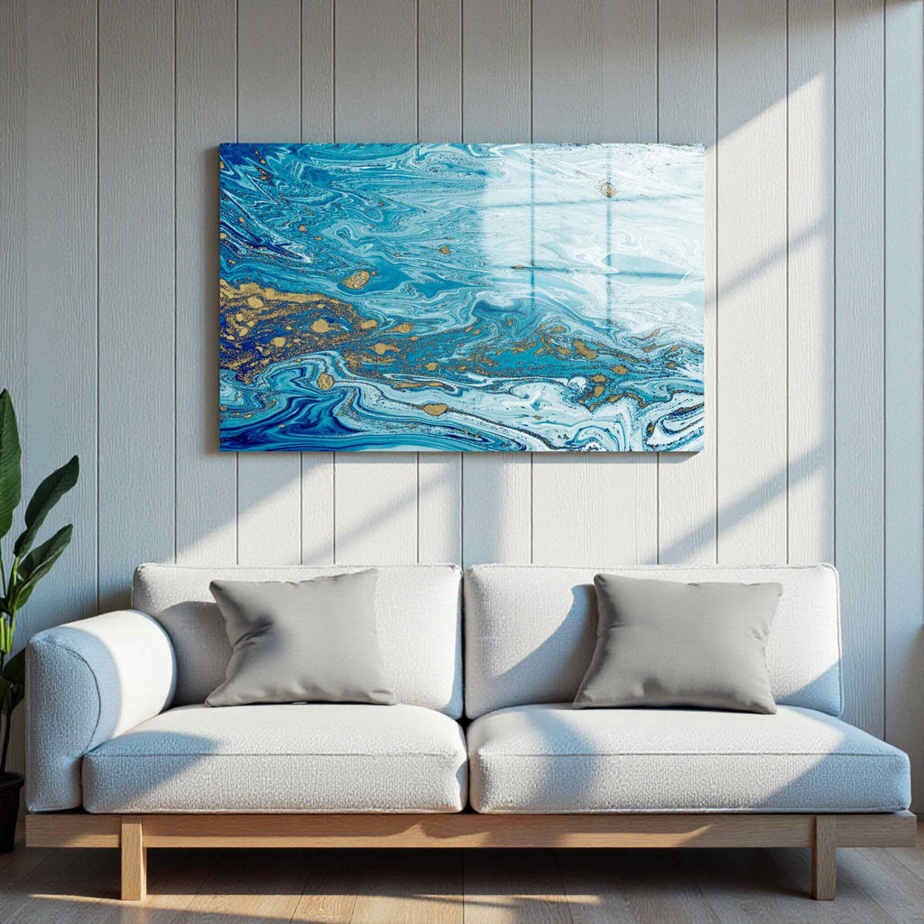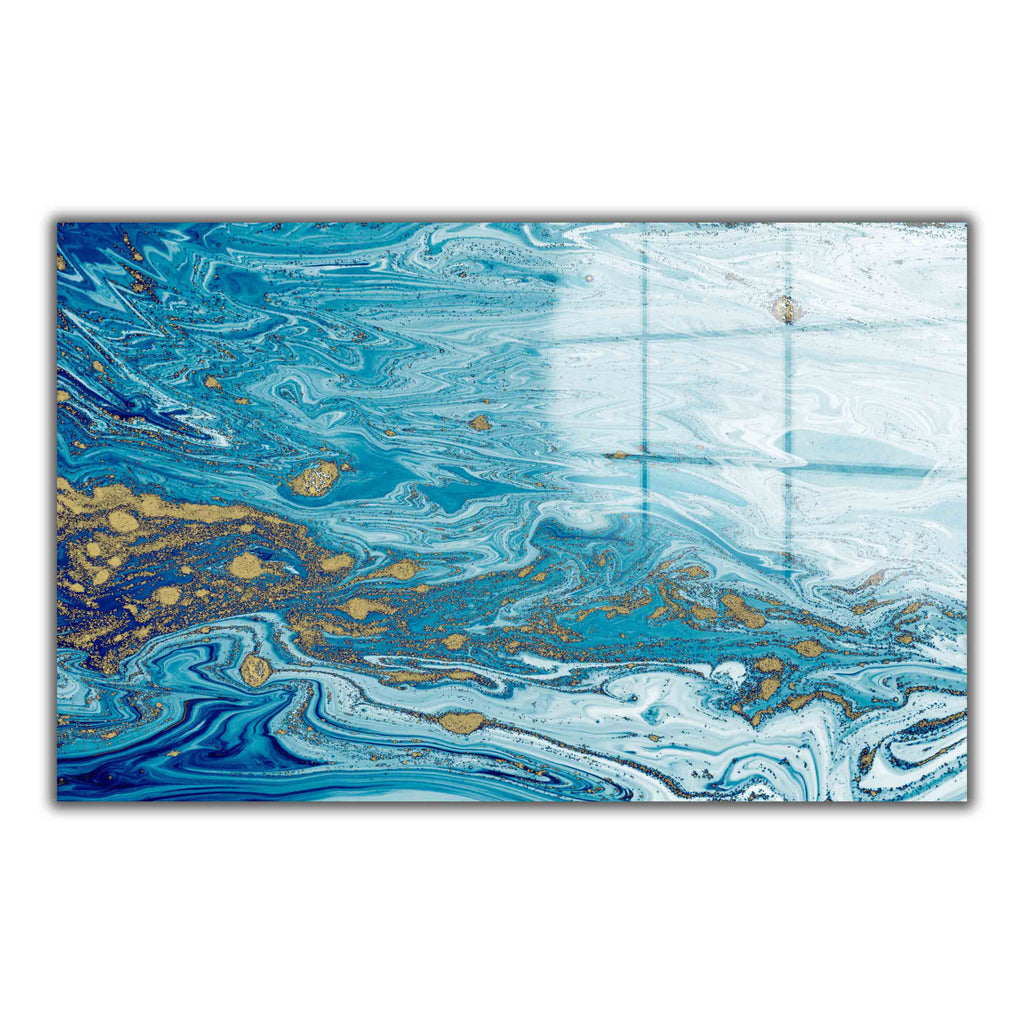 Aqua Serenity Panoramic Tempered Glass Wall Art - Horizontal Rectangular Wall Decor