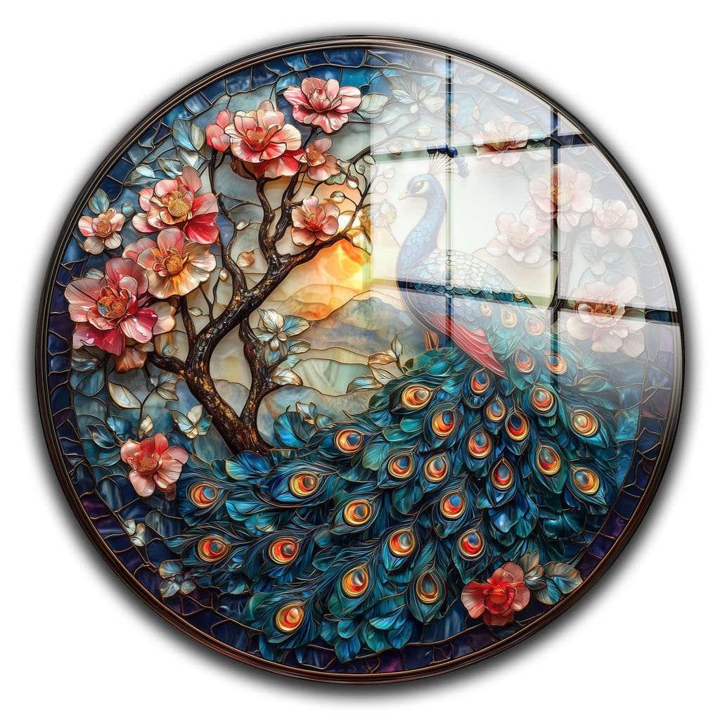 Blossom Round Glass Wall Art - Tempered Glass Circle Wall Decor