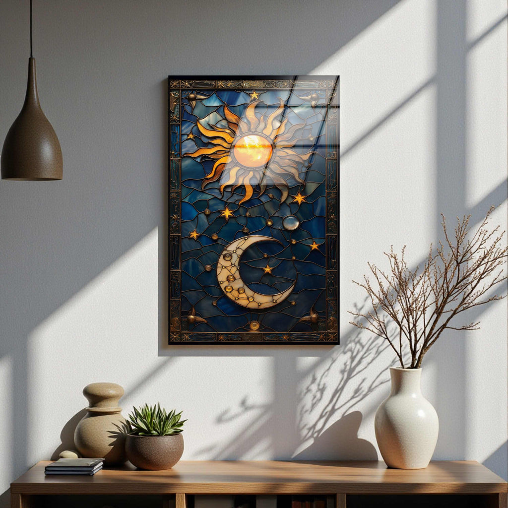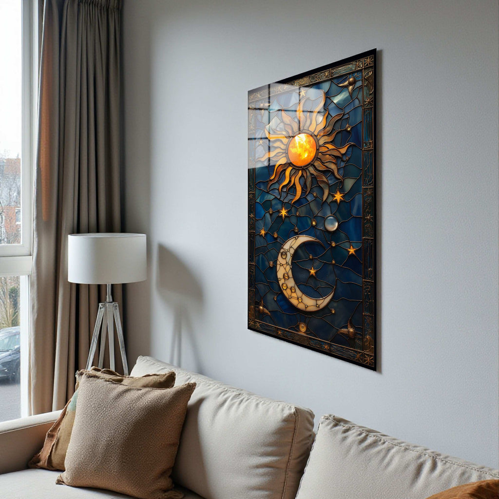 Celestial Unity Vertical Glass Wall Art - Tempered Glass Rectangular Wall Decor