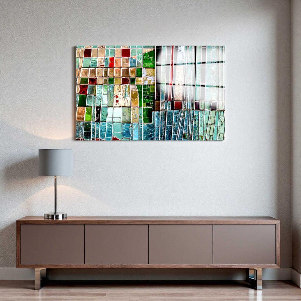 Digital Mosaic Panoramic Tempered Glass Wall Art - Horizontal Rectangular Wall Decor