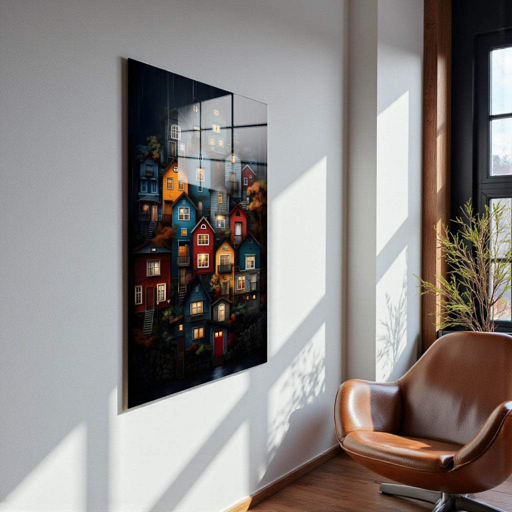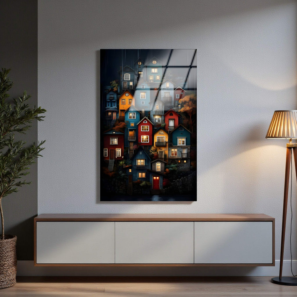 Dreamscape House Vertical Glass Wall Art - Tempered Glass Rectangular Wall Decor