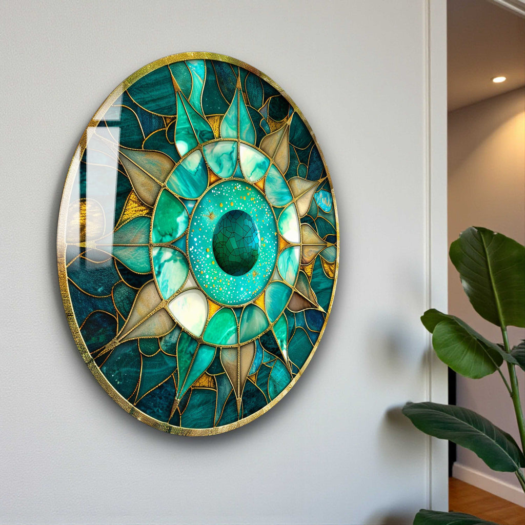 Emerald Round Glass Wall Art - Tempered Glass Circle Wall Decor