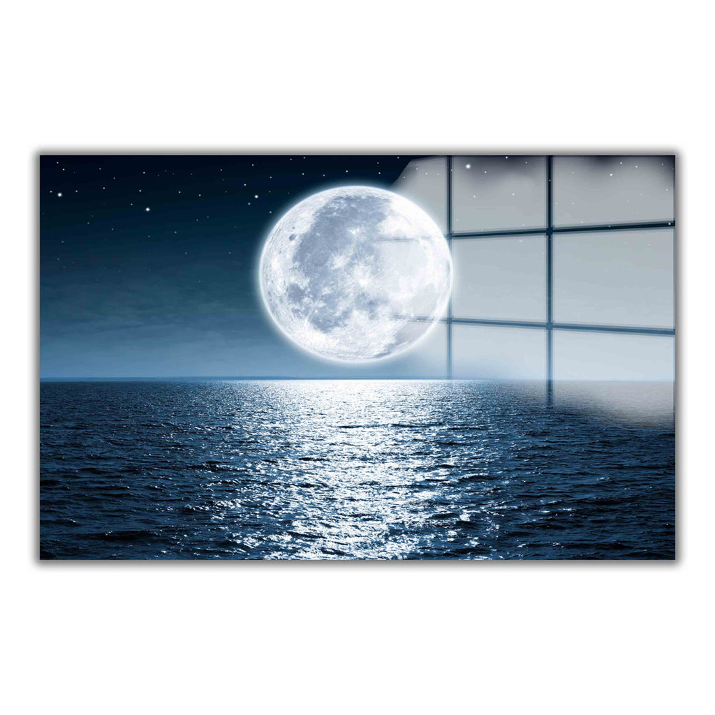 Full Moon Panoramic Tempered Glass Wall Art - Horizontal Rectangular Wall Decor