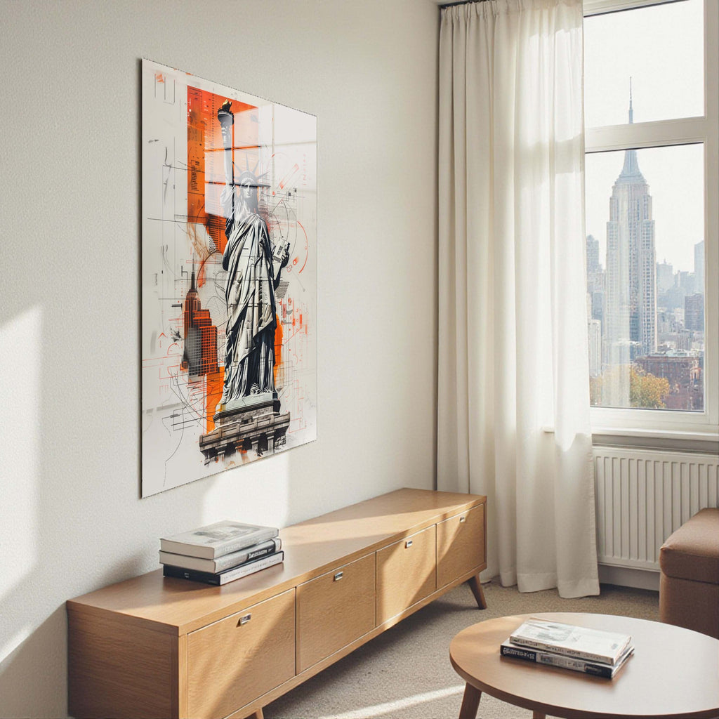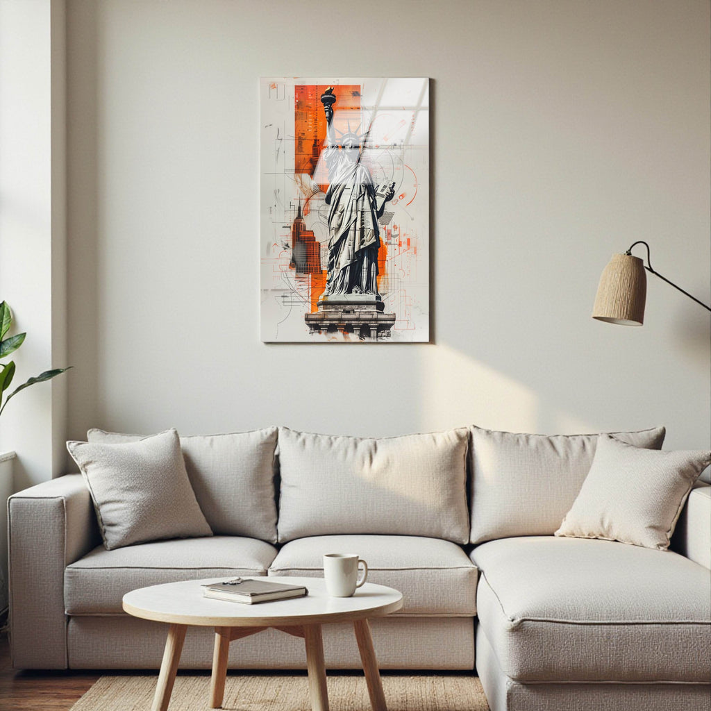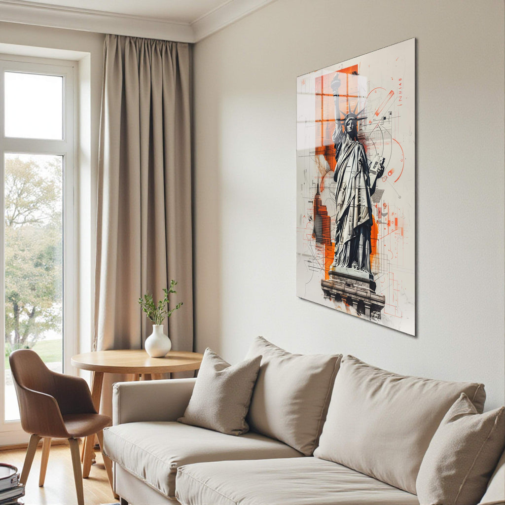 Liberty Abstract Vertical Glass Wall Art - Tempered Glass Rectangular Wall Decor