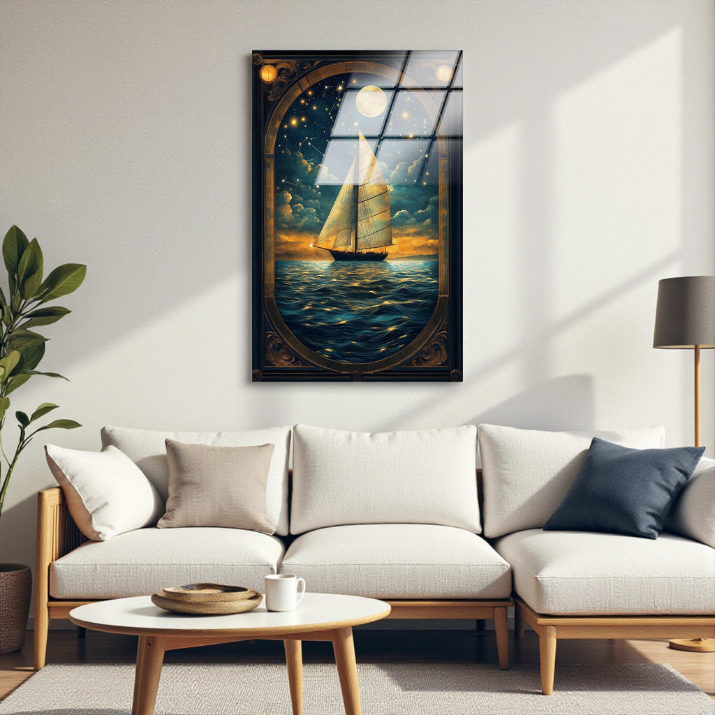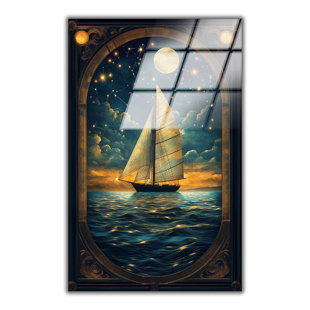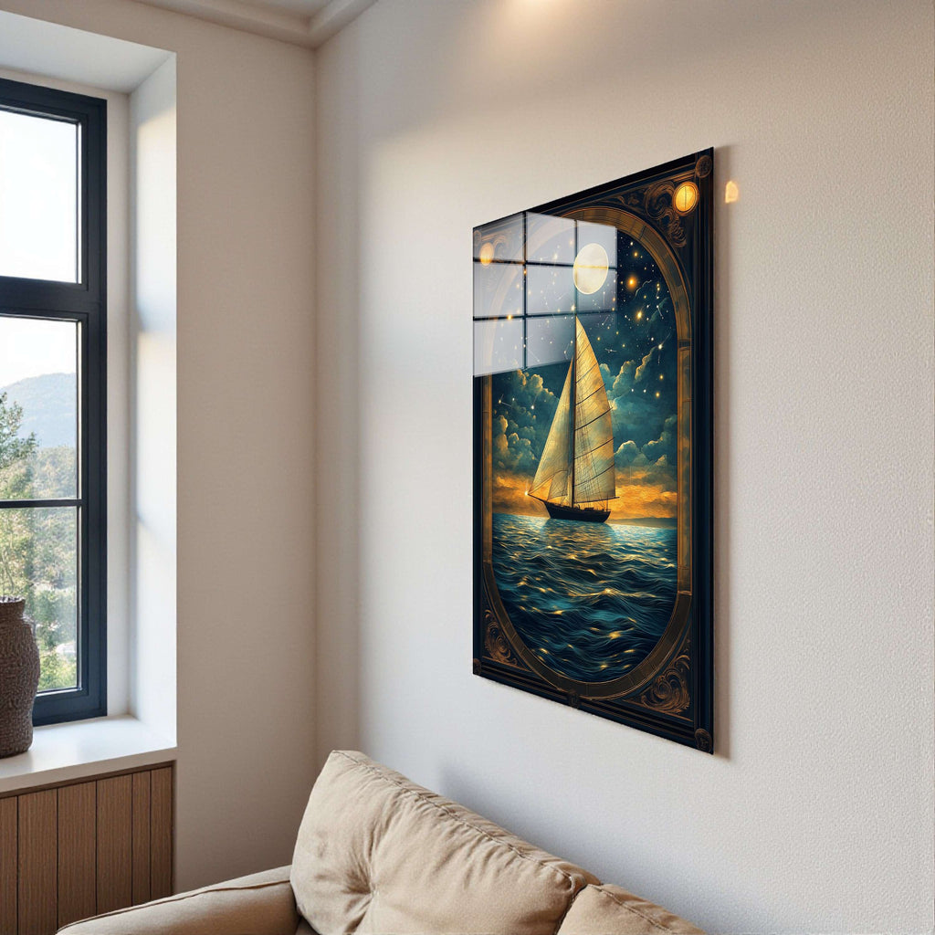 Lunar Passage Vertical Glass Wall Art - Tempered Glass Rectangular Wall Decor