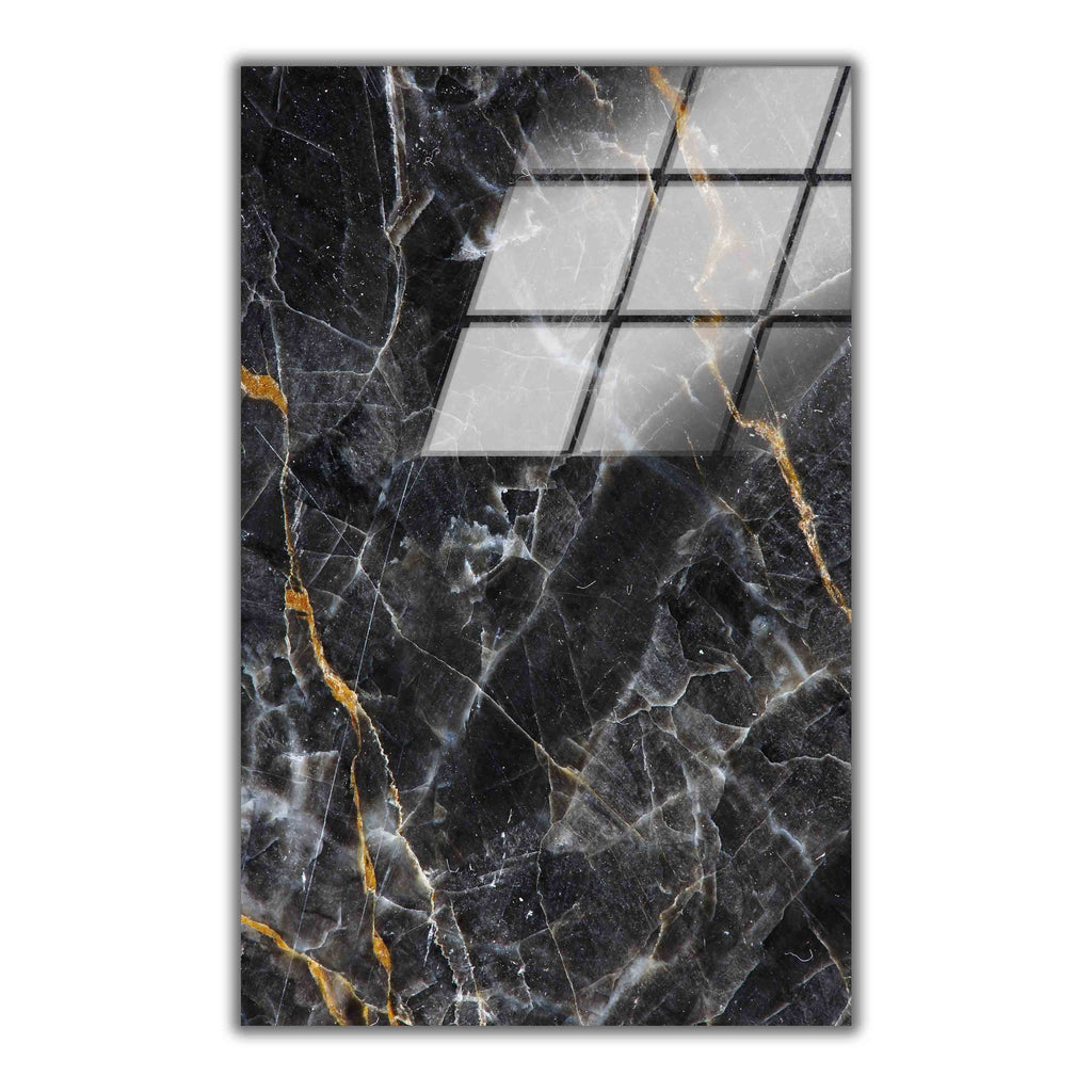 Midnight Veins Vertical Glass Wall Art - Tempered Glass Rectangular Wall Decor