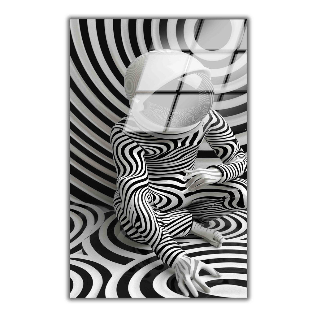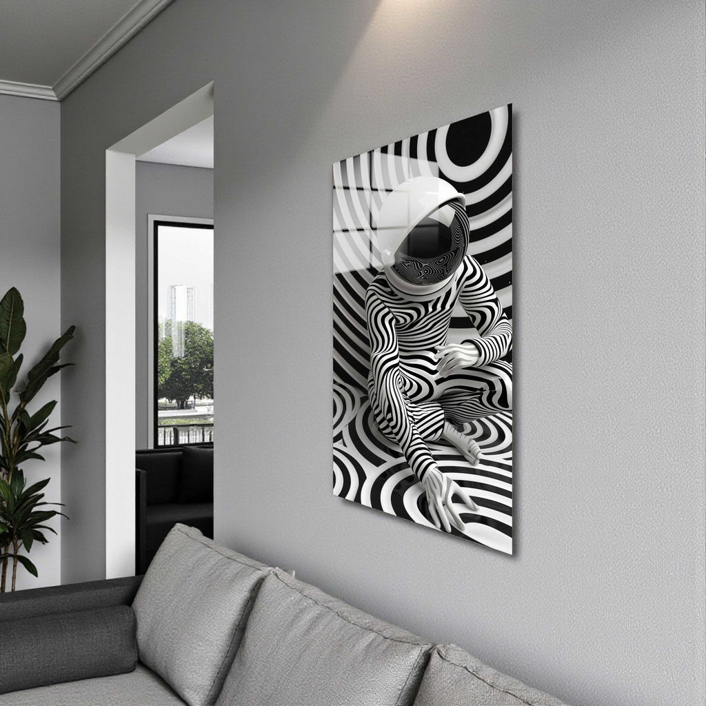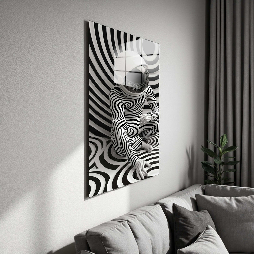 Monochrome Swirl Vertical Glass Wall Art - Tempered Glass Rectangular Wall Decor