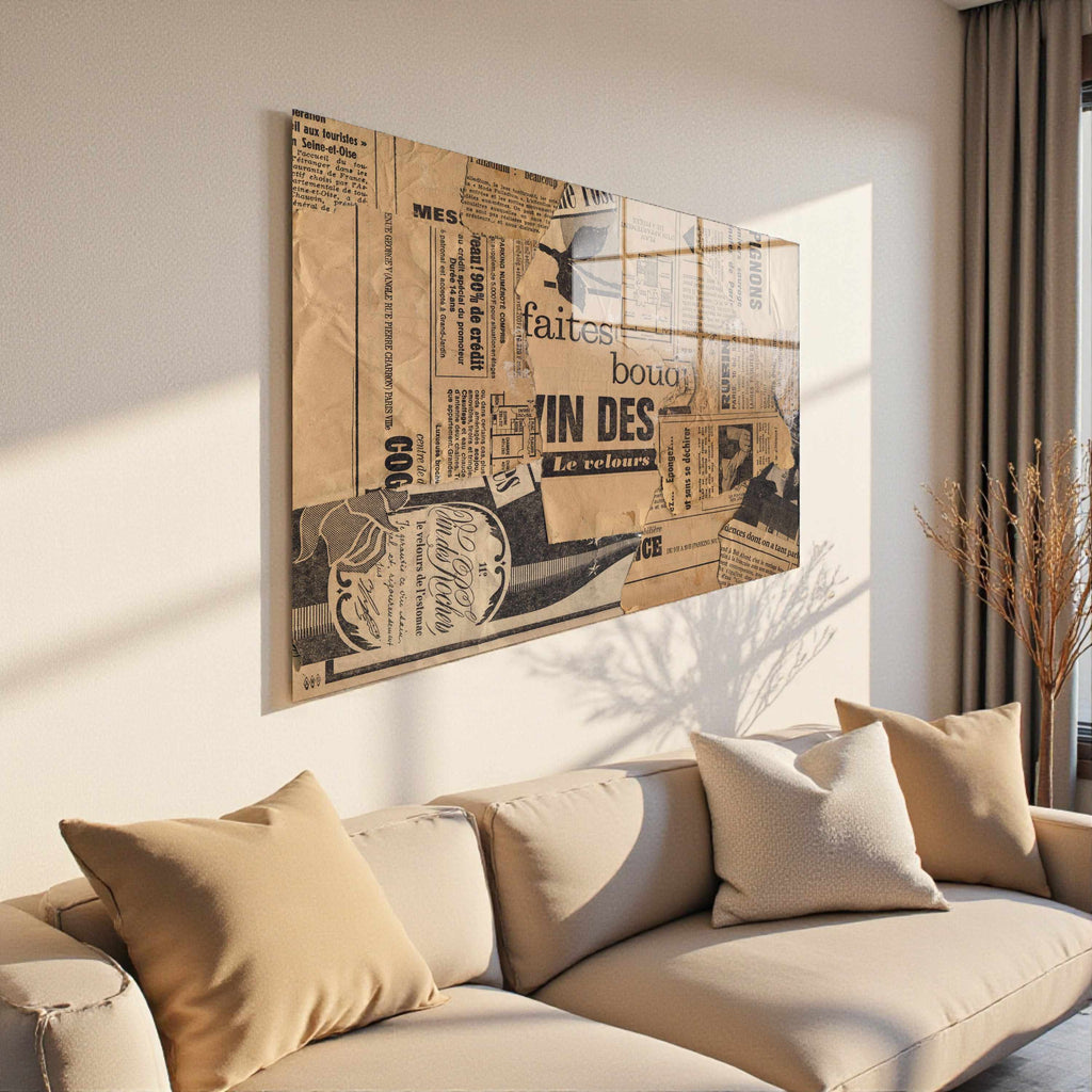 Newspapers Panoramic Tempered Glass Wall Art - Horizontal Rectangular Wall Decor
