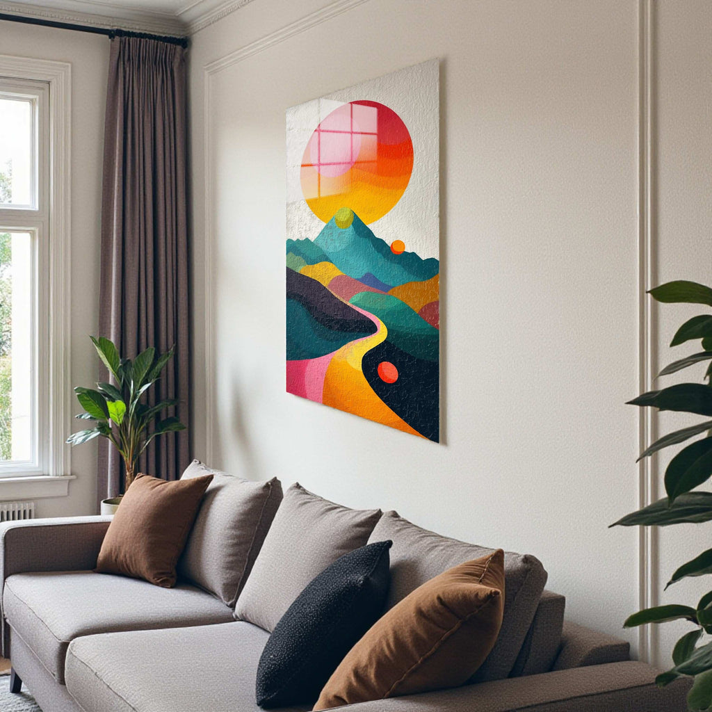 Road to Zenith Vertical Glass Wall Art - Tempered Glass Rectangular Wall Decor