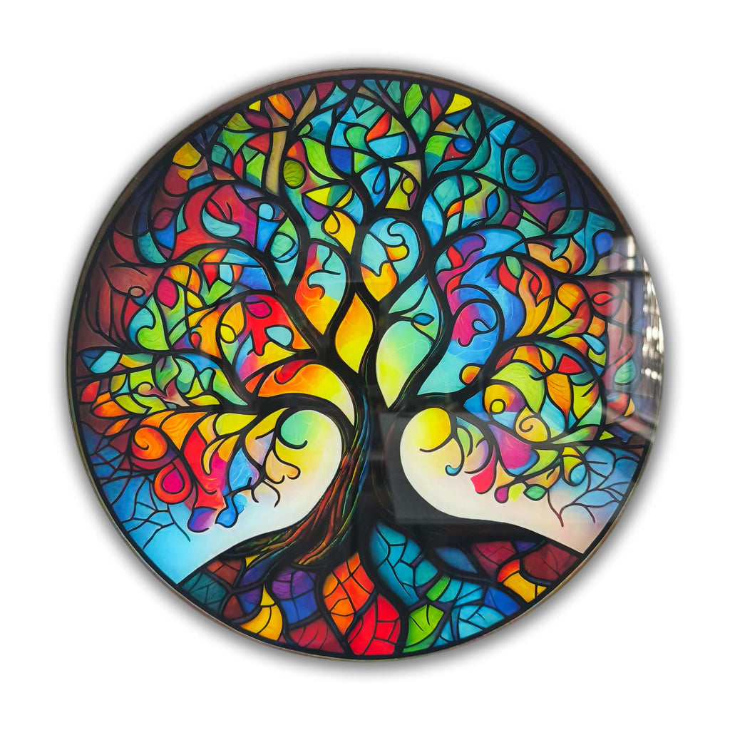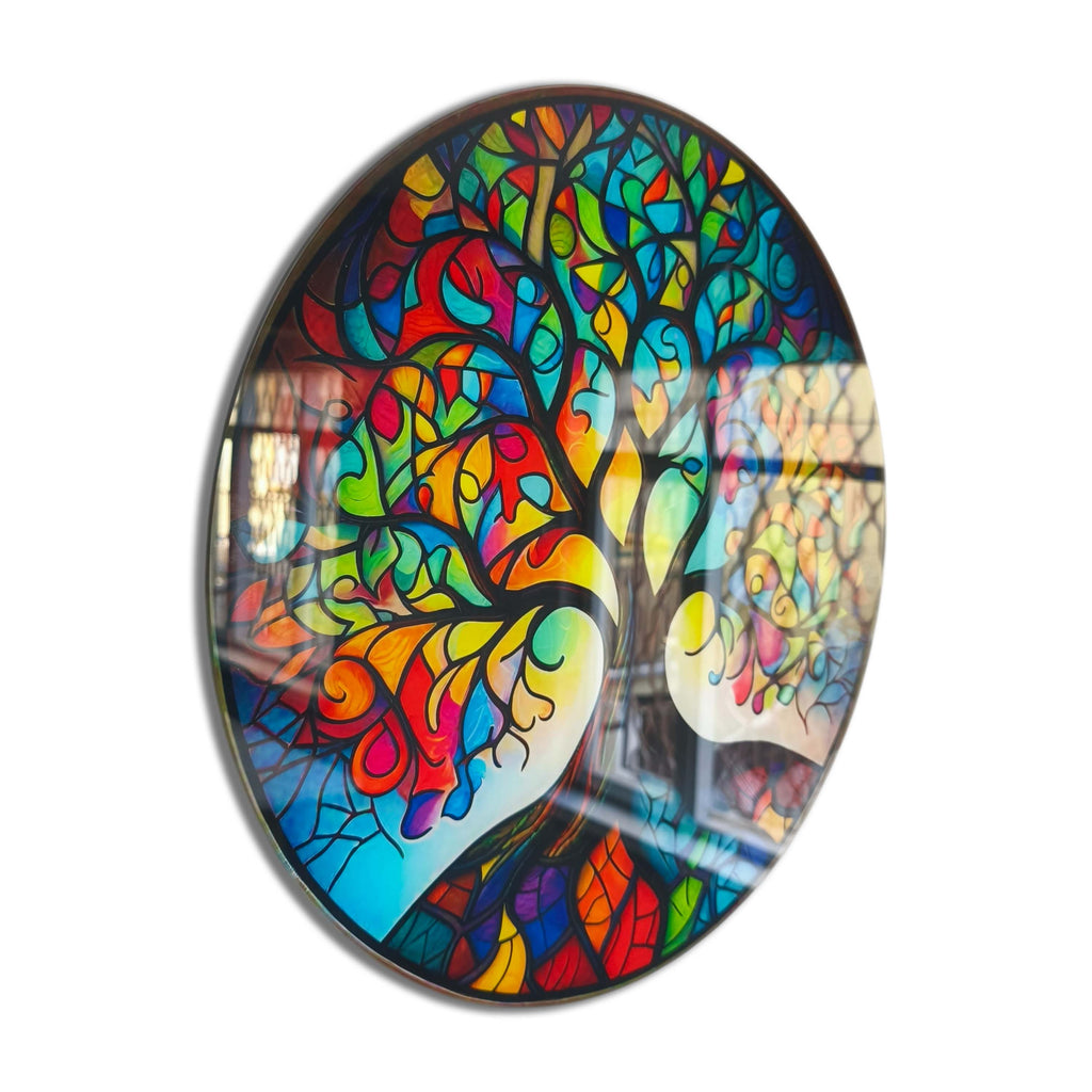 Vitality Tree Of Life, Tempered Glass Round Wall Art - Tempered Glass Circle Wall Decor