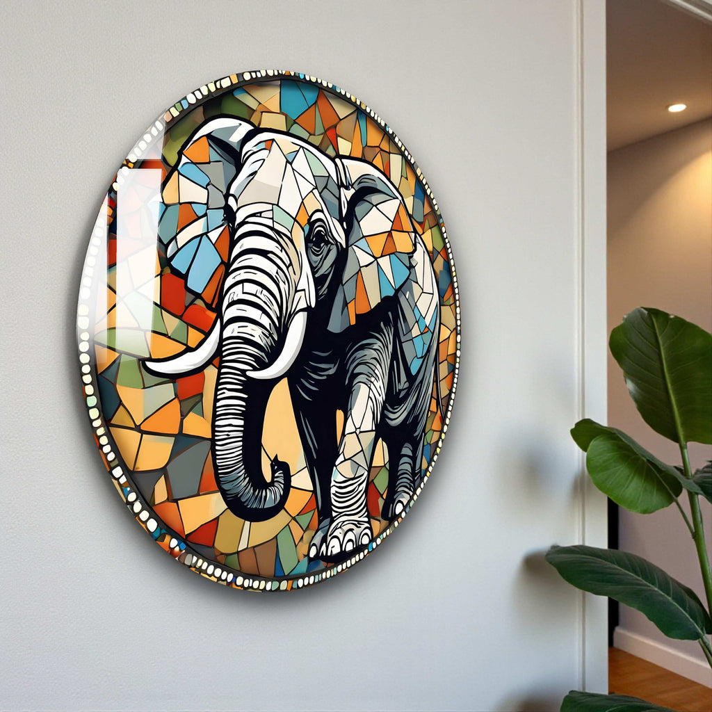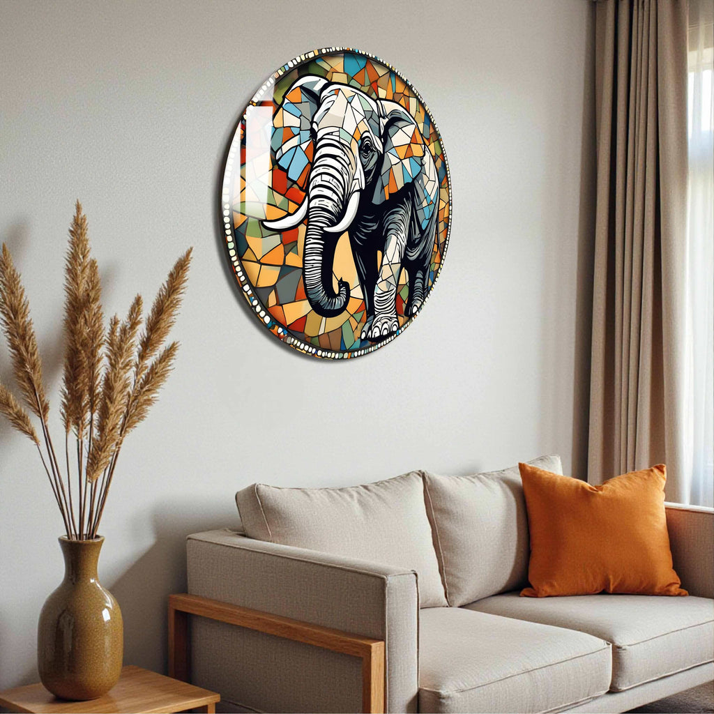 Tusker Round Glass Wall Art - Tempered Glass Circle Wall Decor