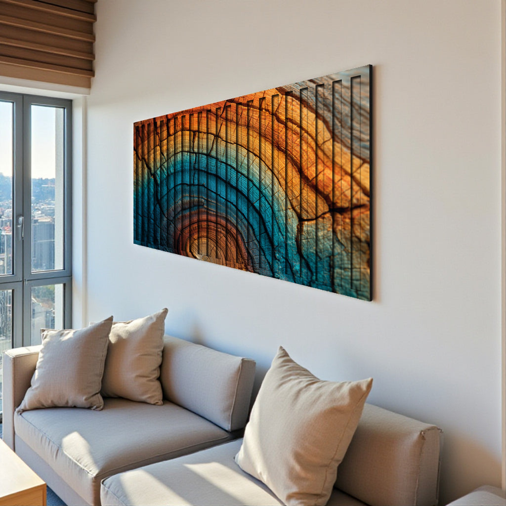 Chromatic Rings – 3D Carved Wood Wall Art - Textured Horizontal Wall Decor