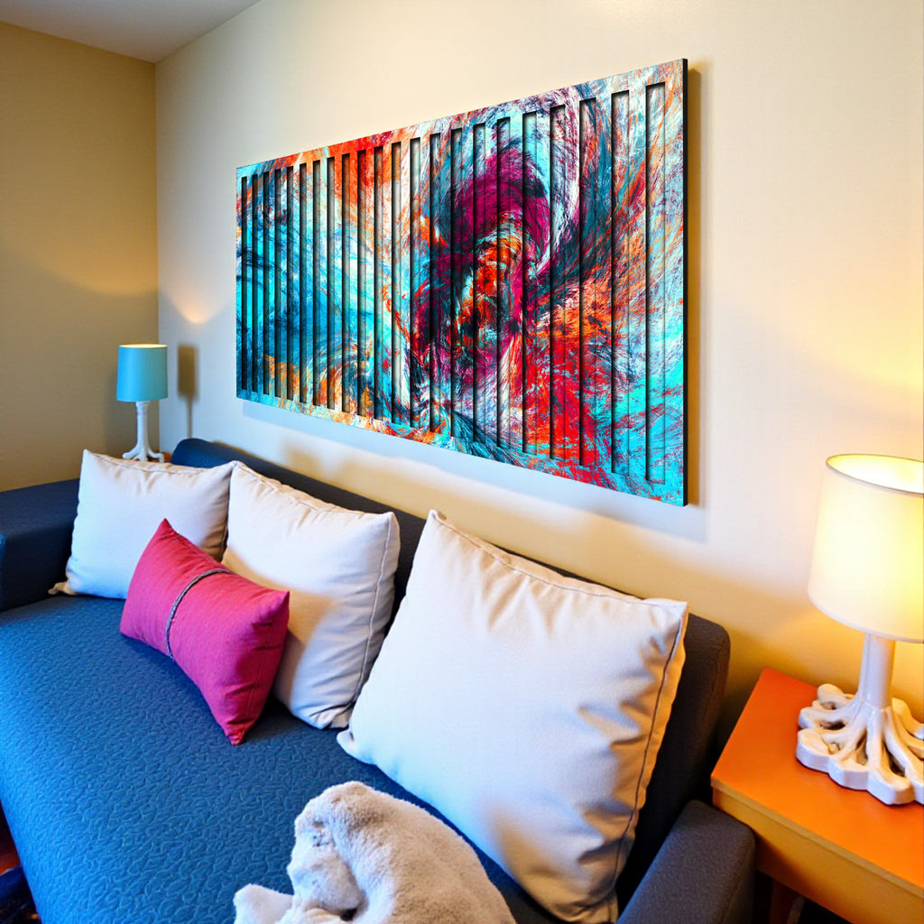 Transform your space with the captivating texture and vibrant colors of our Unlike standard flat prints, this piece features a unique 3D surface with 5mm deep carved grooves, adding genuine depth and a tactile feel to your wall decor.