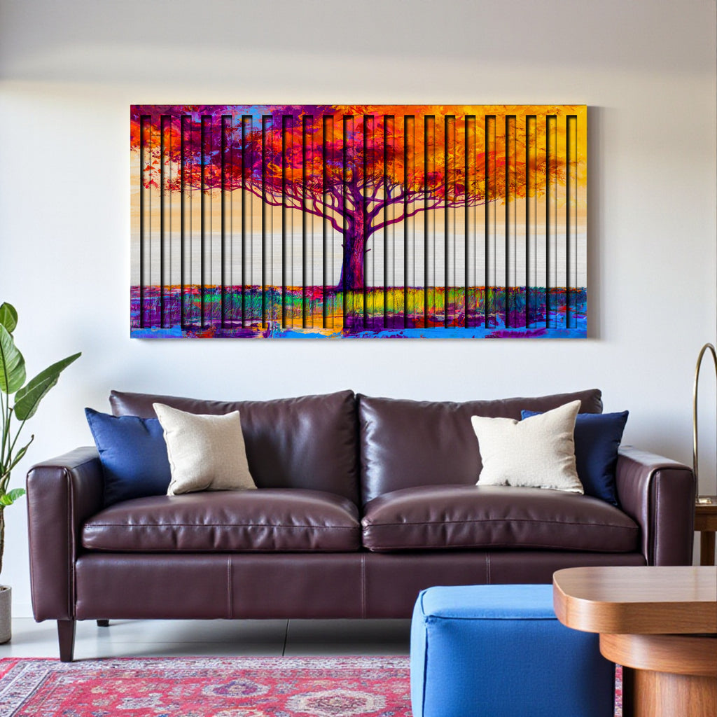 Transform your space with the captivating texture and vibrant colors of our Unlike standard flat prints, this piece features a unique 3D surface with 5mm deep carved grooves, adding genuine depth and a tactile feel to your wall decor.