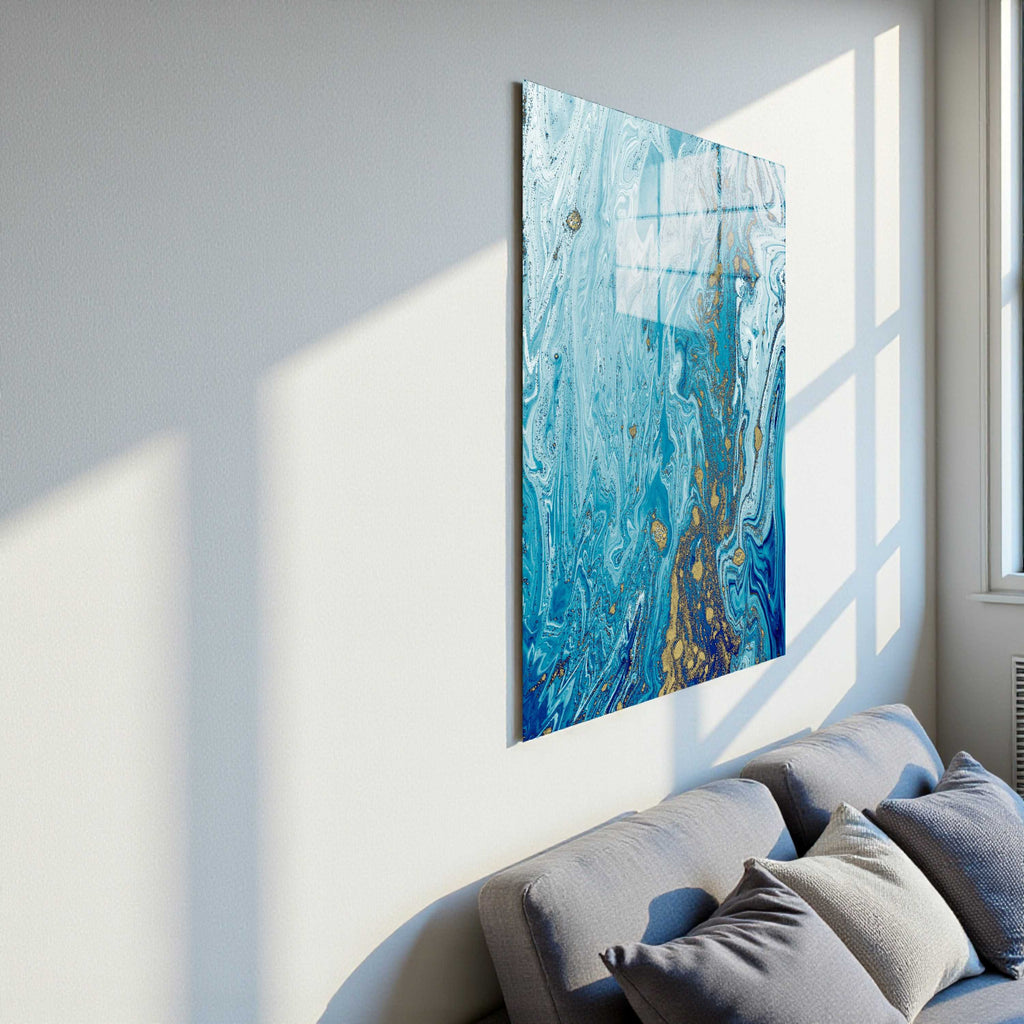 Aqua Serenity Vertical Glass Wall Art - Tempered Glass Rectangular Wall Decor