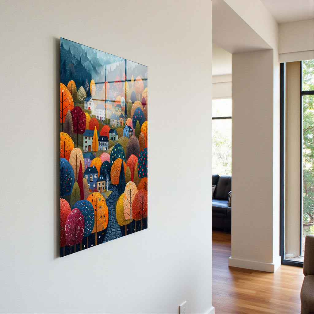 Autumn Canopy Vertical Glass Wall Art - Tempered Glass Rectangular Wall Decor