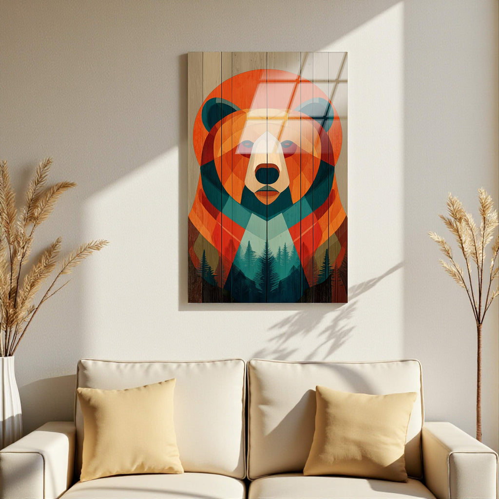 Bear Geometry Vertical Glass Wall Art - Tempered Glass Rectangular Wall Decor