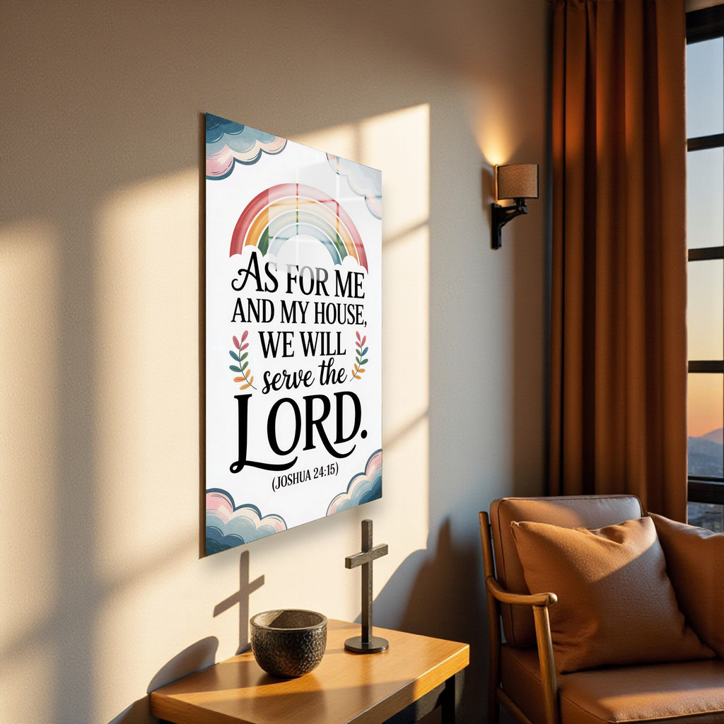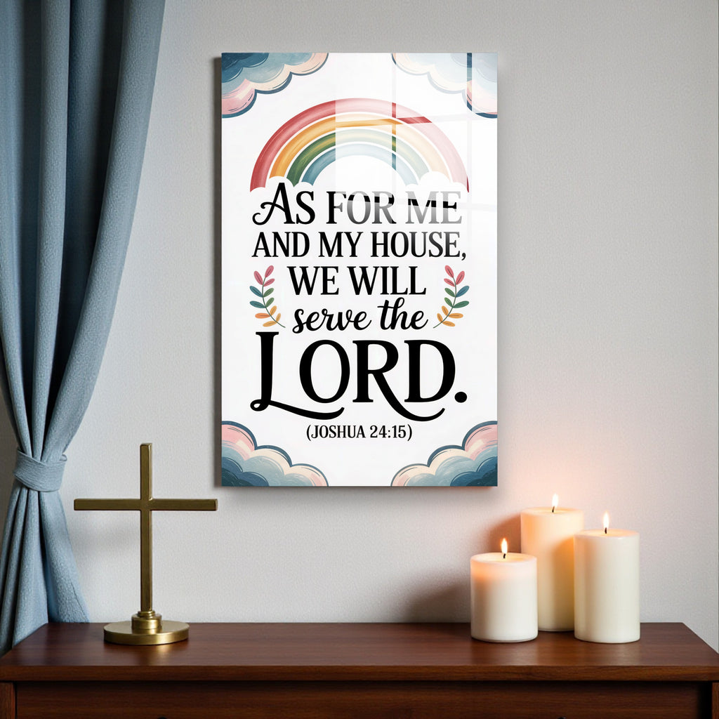 Christian Glass Wall Art - [As for me and my house, we will serve the Lord. (Joshua 24 15)] Bible Scripture Decor)