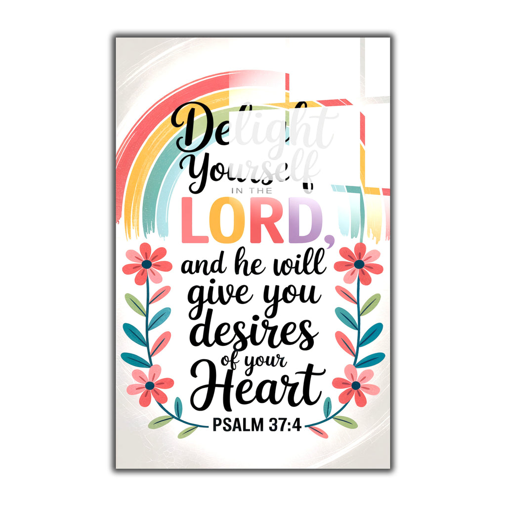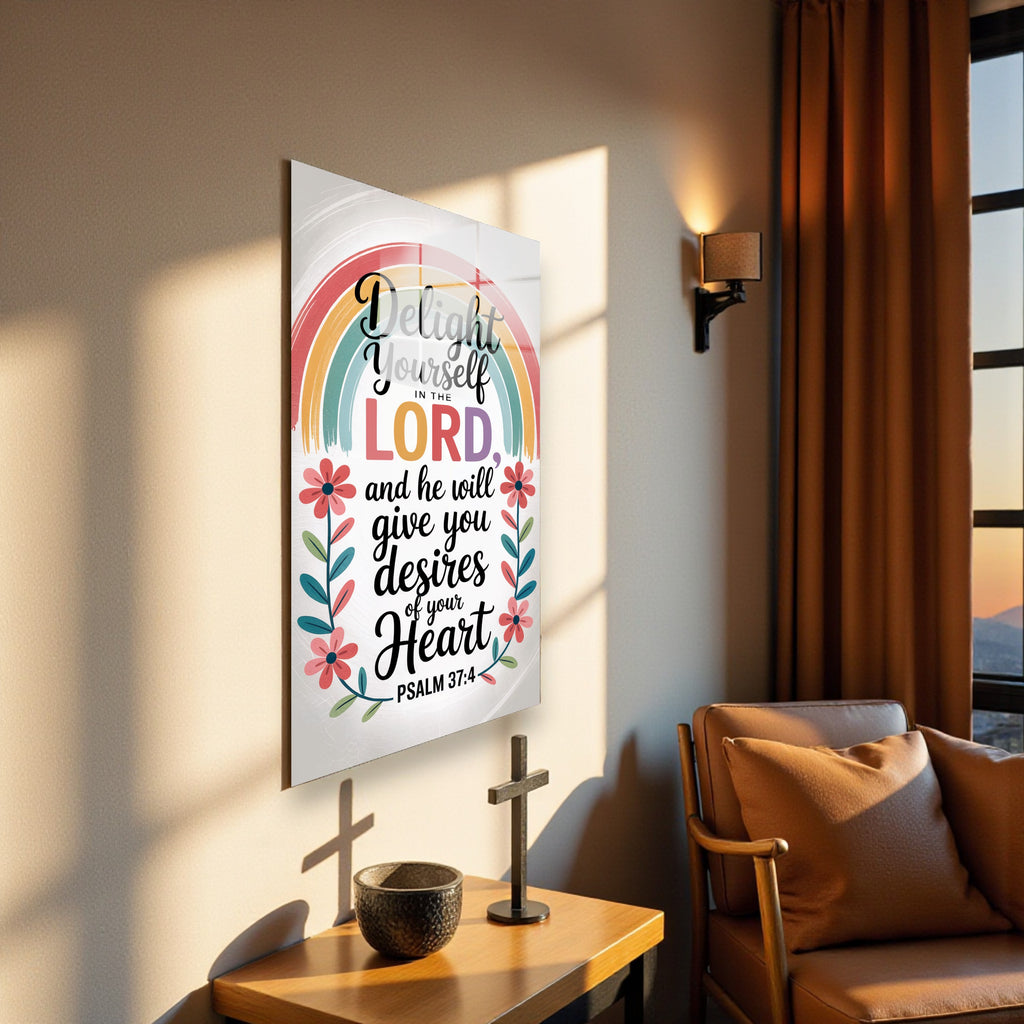 Christian Glass Wall Art - [Delight yourself in the Lord, and He will give you the desires of your heart. (Psalm 37 4)] Bible Scripture Decor