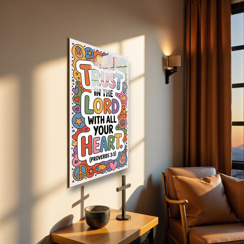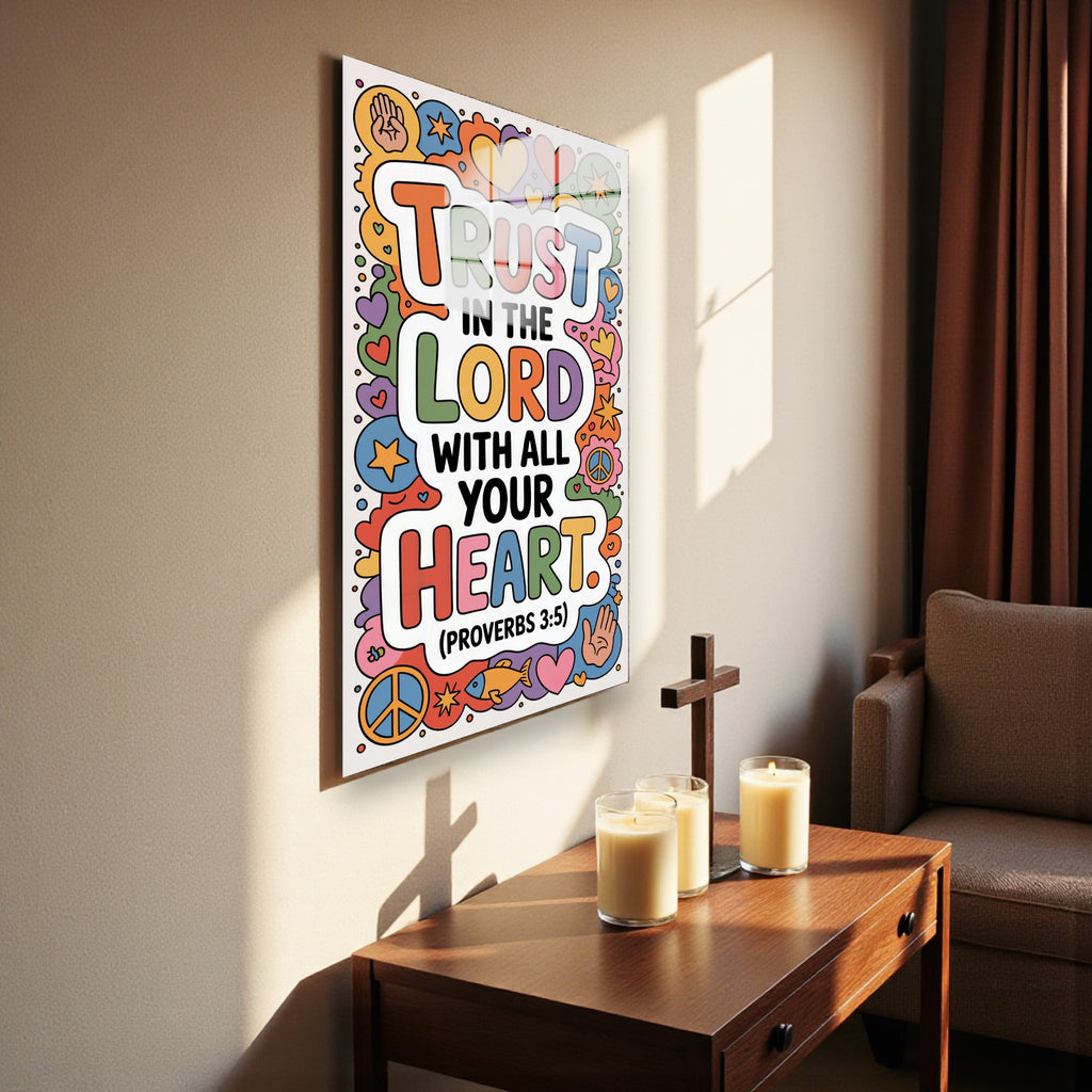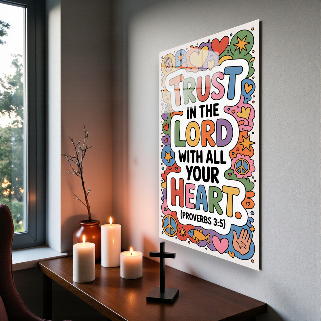 Christian Glass Wall Art - [Trust in the Lord with all your heart. (Proverbs 3 5)] Bible Scripture Decor