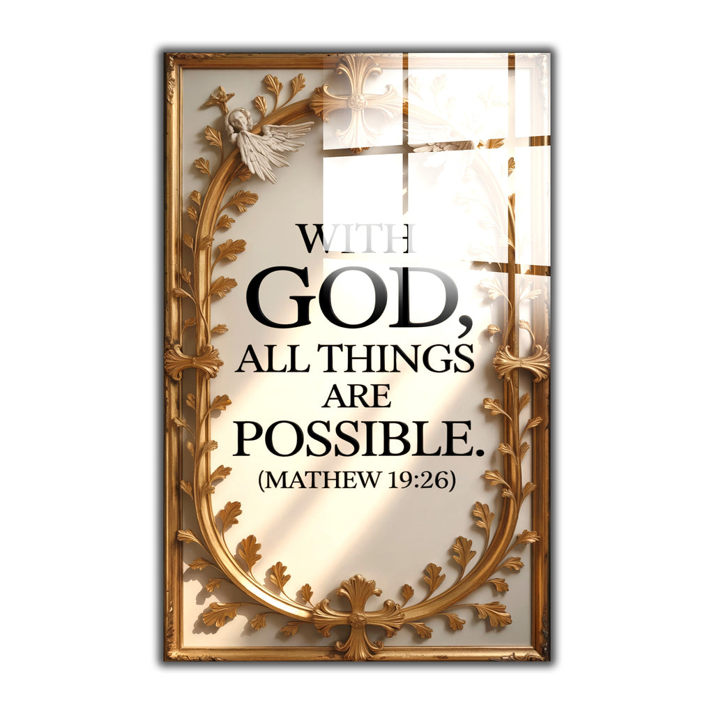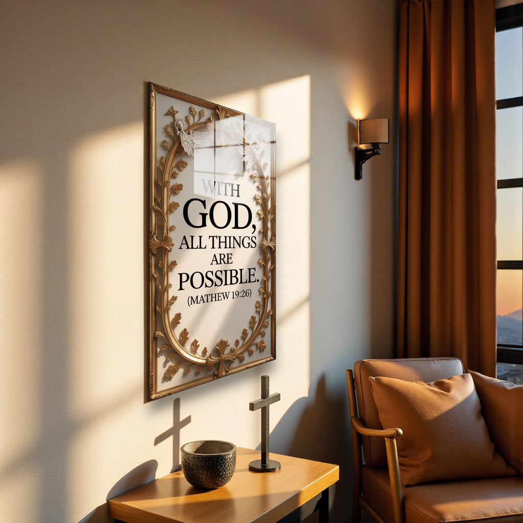 Christian Glass Wall Art - [With God, all things are possible. (Matthew 19 26)] Bible Scripture Decor