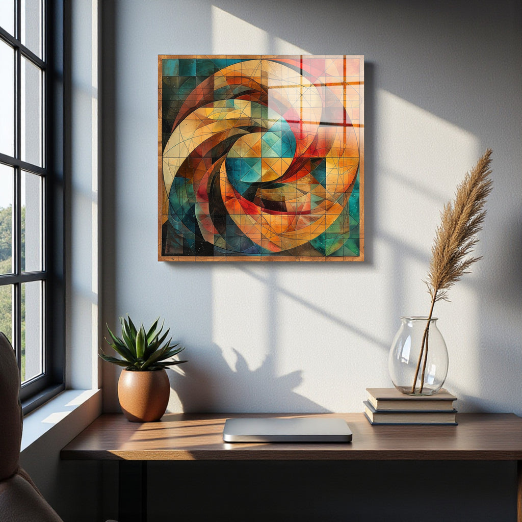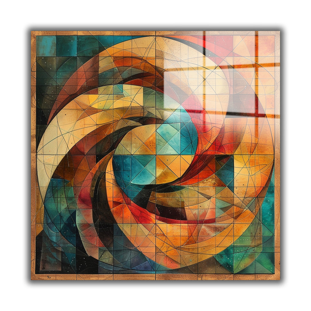 Fusion Square Tempered Glass Wall Art - Abstract Design - Large Glass Decor for Living Room & Office