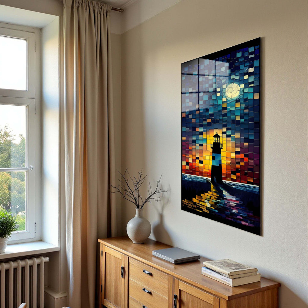 Guiding Light Vertical Glass Wall Art - Tempered Glass Rectangular Wall Decor