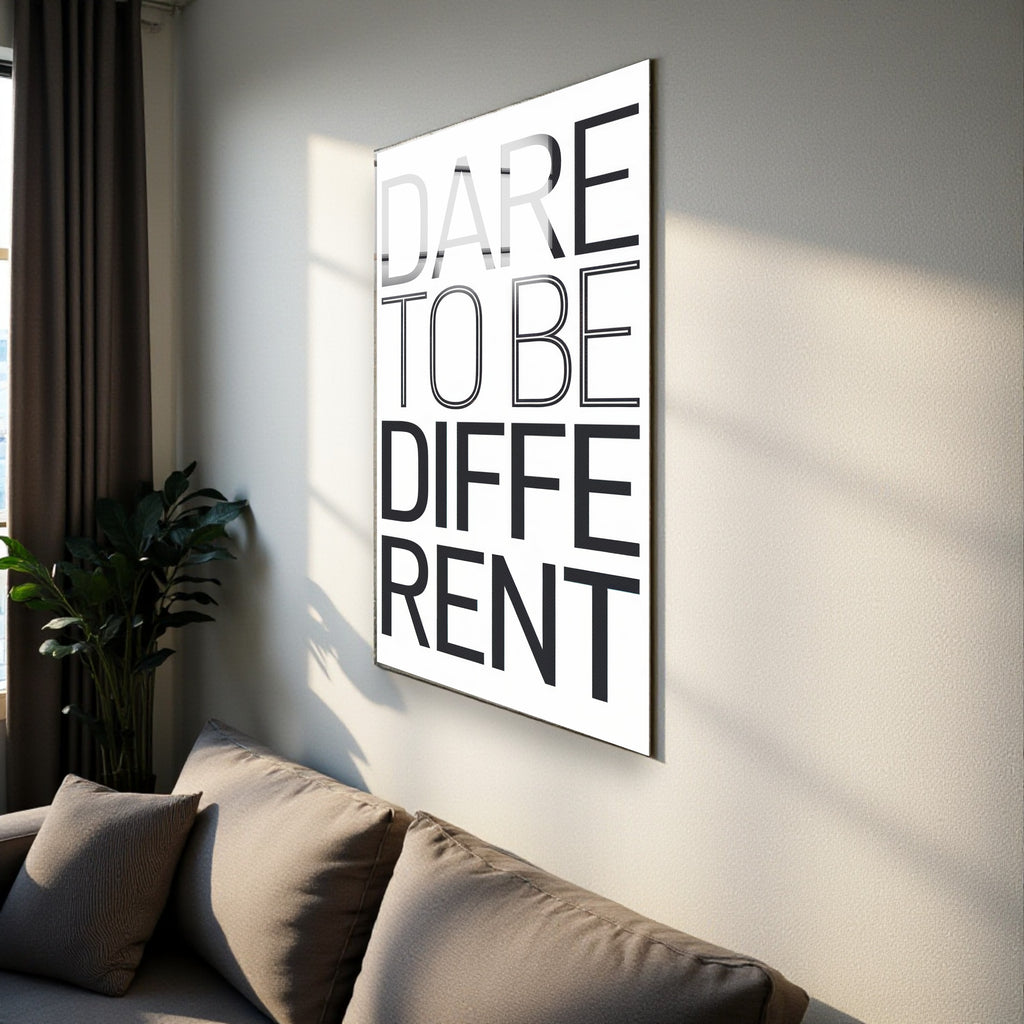 Motto Dare To Be Different Vertical Glass Wall Art - Tempered Glass Rectangular Wall Decor