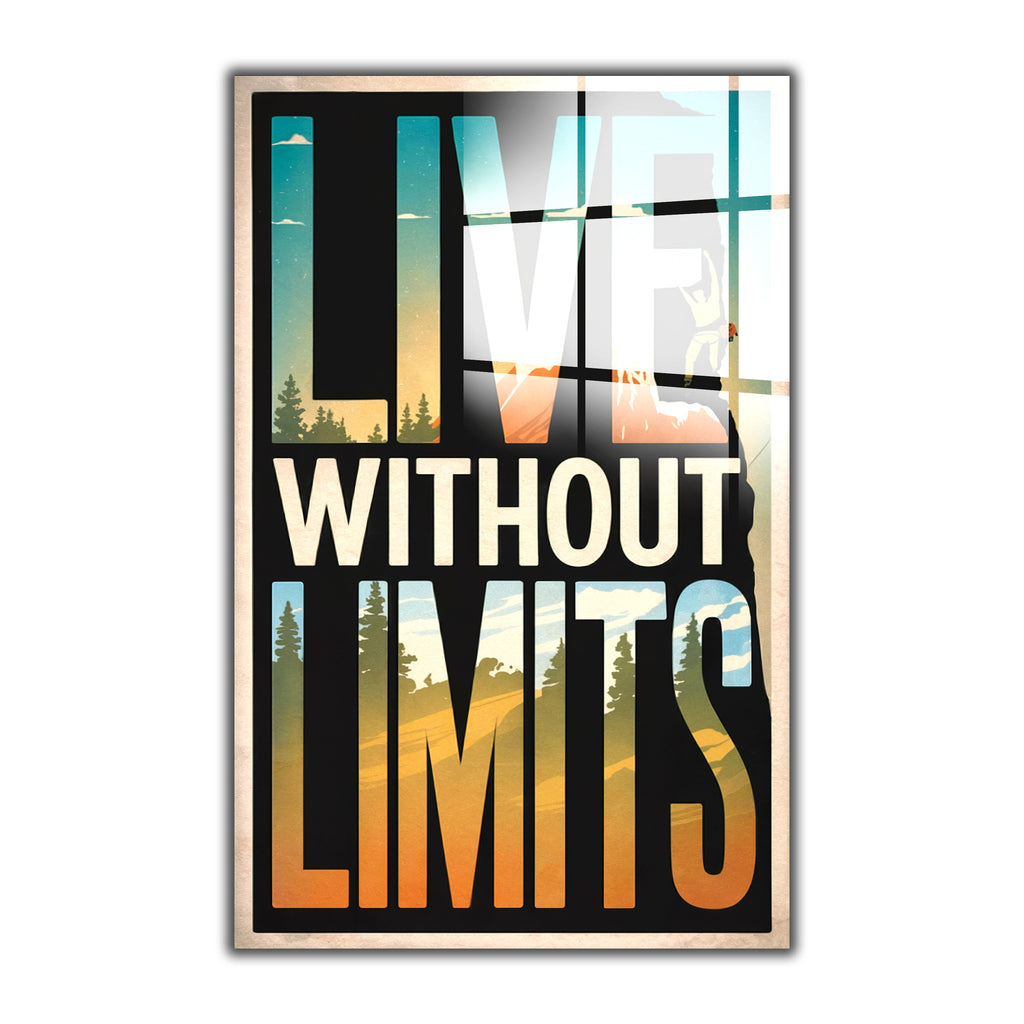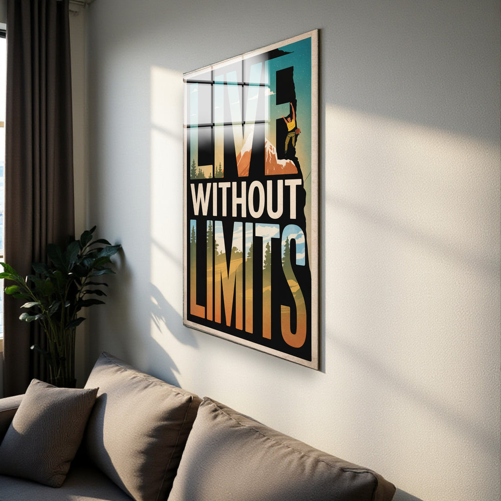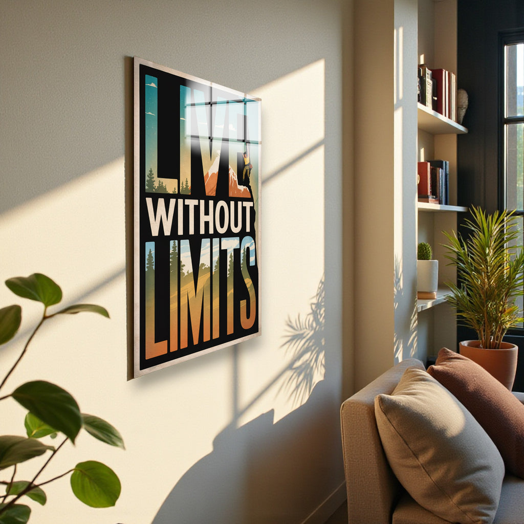Motto Live Without Limits Vertical Glass Wall Art - Tempered Glass Rectangular Wall Decor