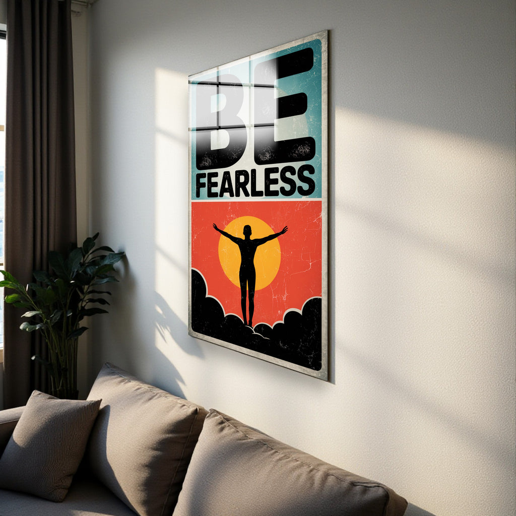 Motto Motto Be Fearless Vertical Glass Wall Art - Tempered Glass Rectangular Wall Decor