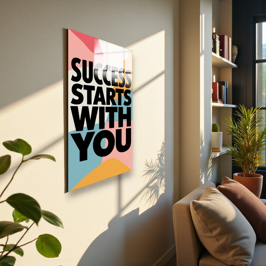 Motto Success Starts With you Vertical Glass Wall Art - Tempered Glass Rectangular Wall Decor