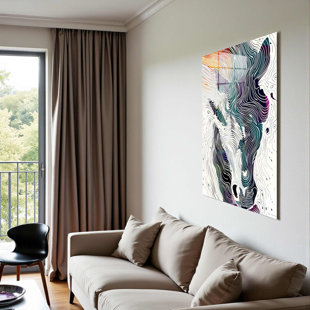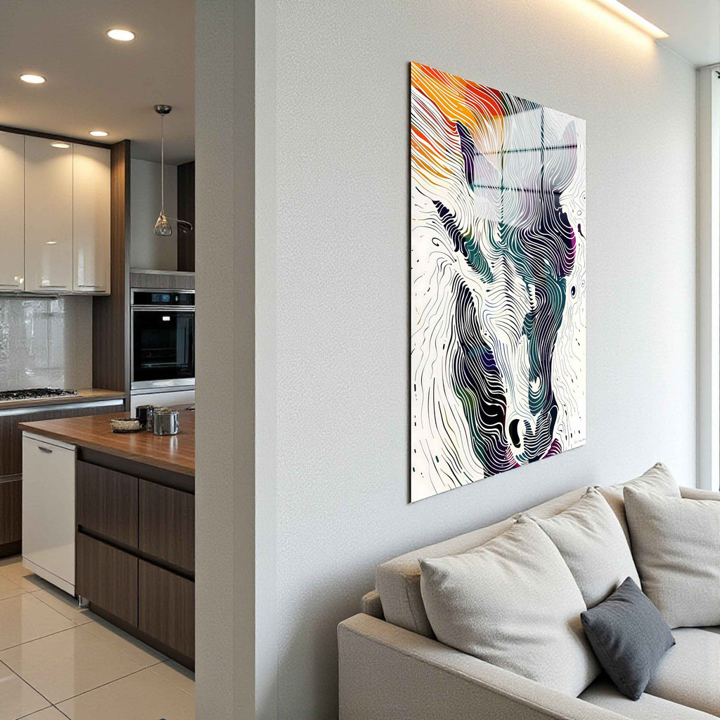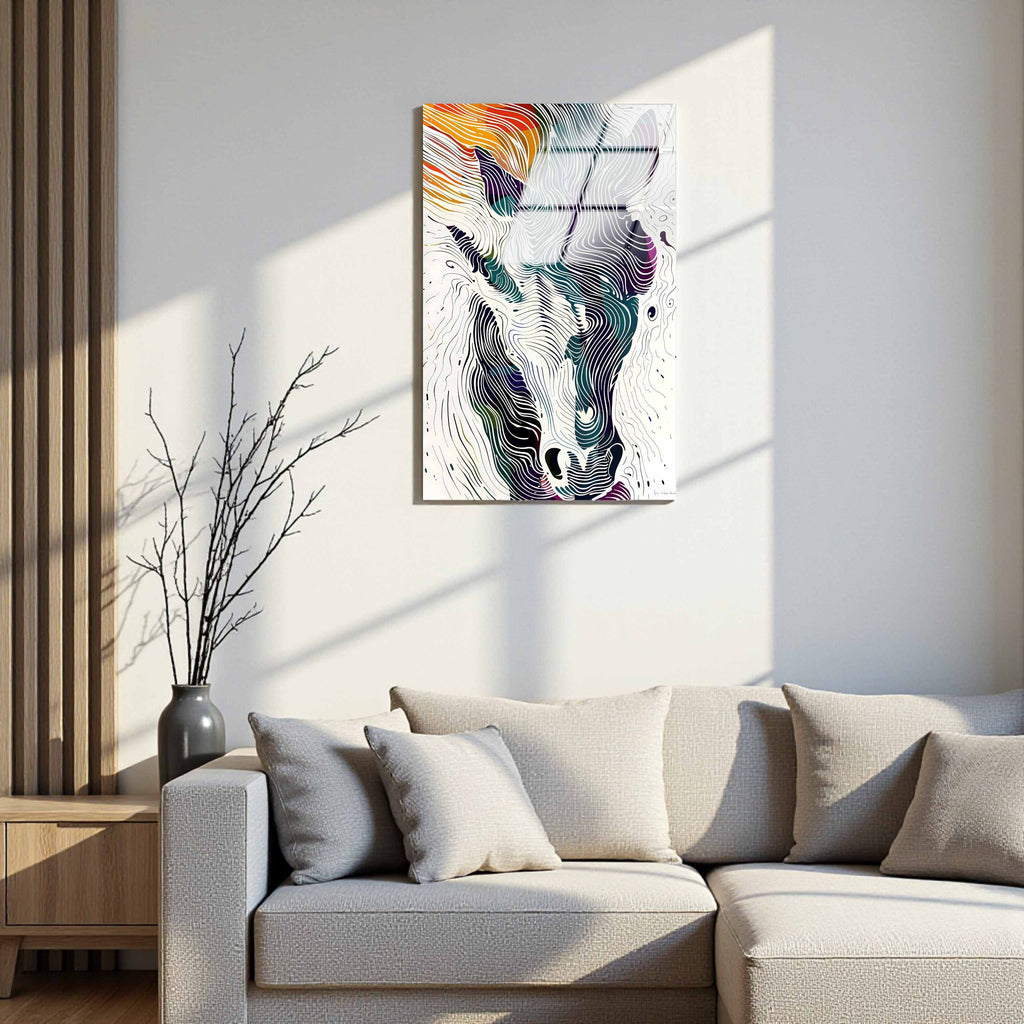 Spectral Steed Vertical Glass Wall Art - Tempered Glass Rectangular Wall Decor