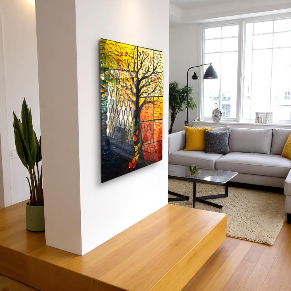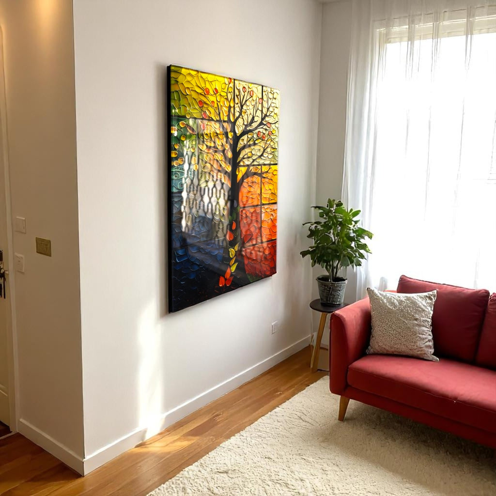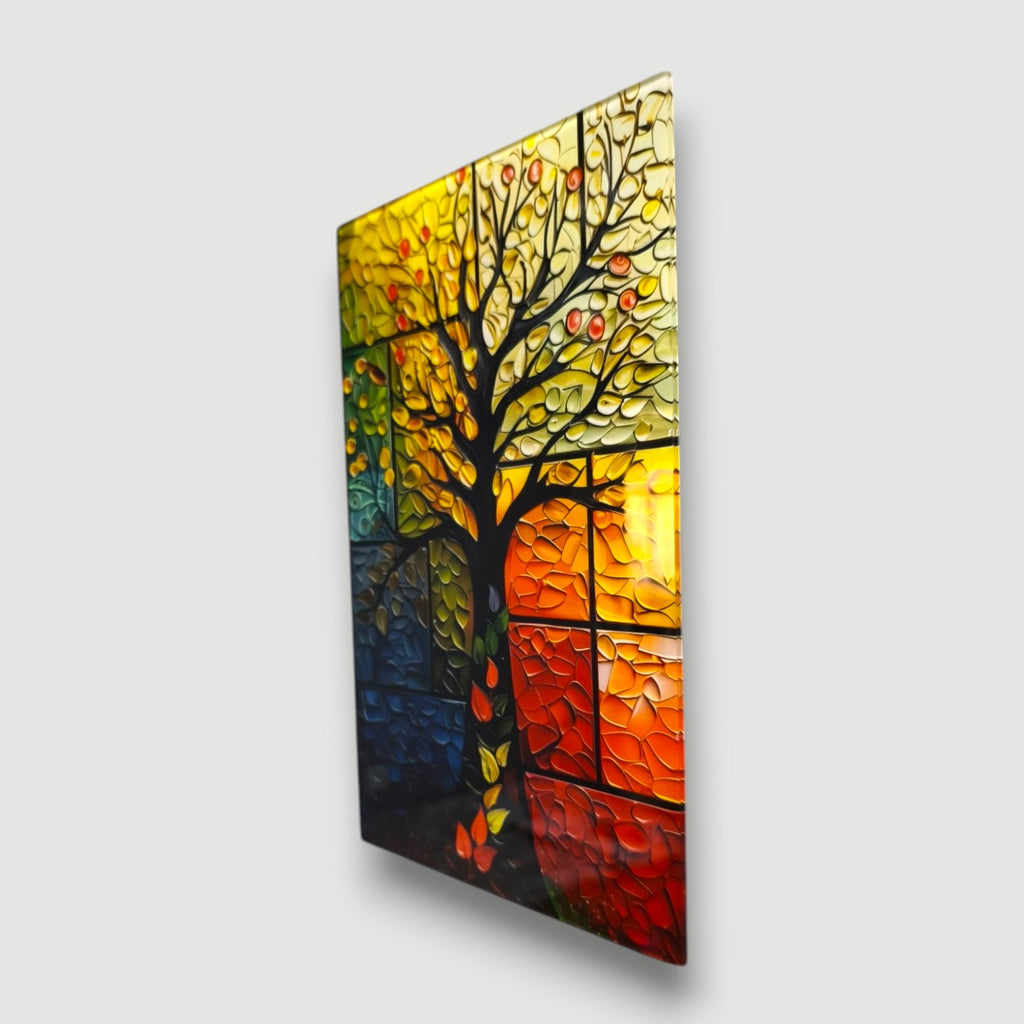 Tree Of Life Aurum Vertical Glass Wall Art - Tempered Glass Rectangular Wall Decor