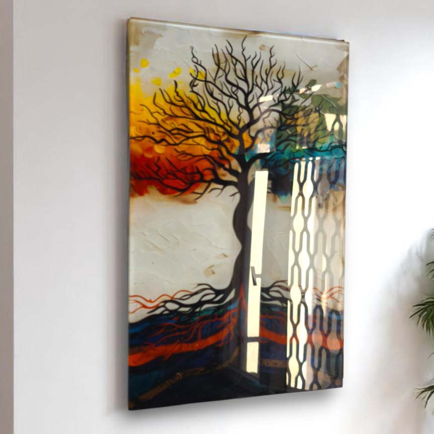 Tree Of Life Calvora Vertical Glass Wall Art - Tempered Glass Rectangular Wall Decor