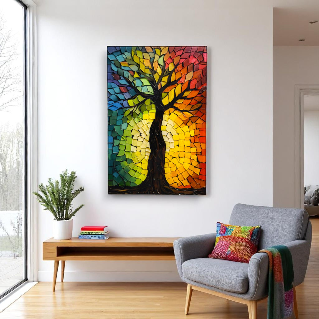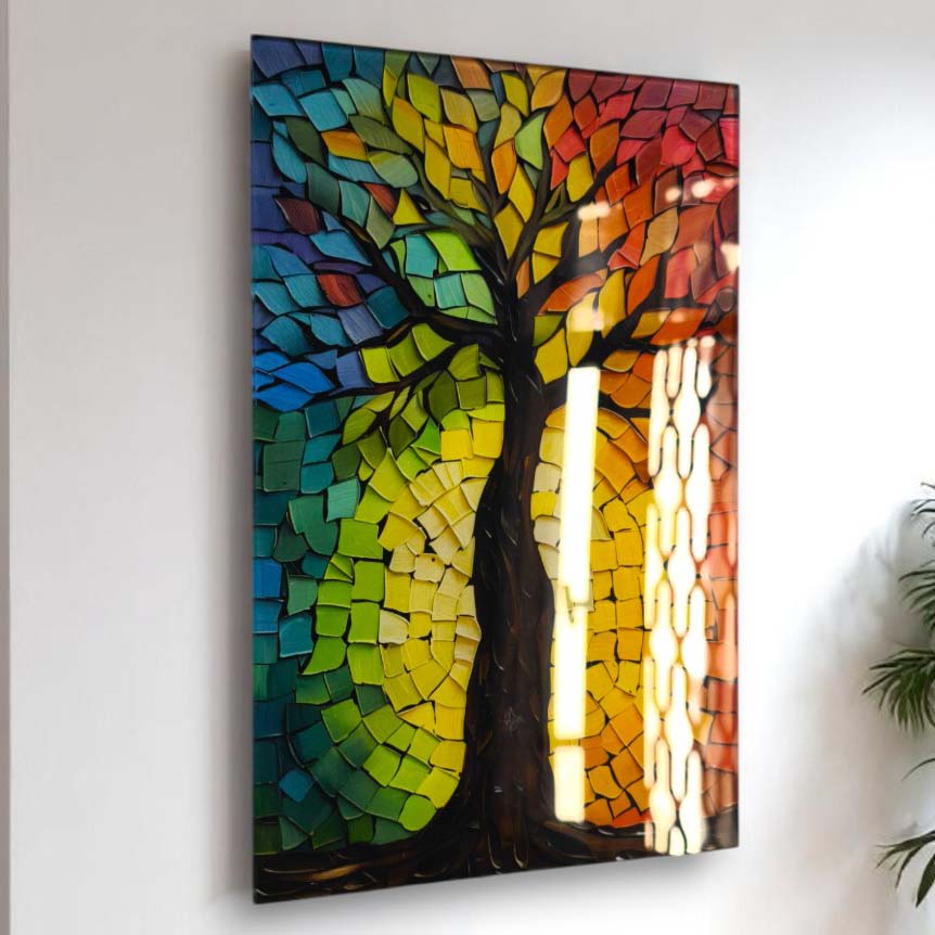 Tree Of Life Solara Vertical Glass Wall Art - Tempered Glass Rectangular Wall Decor
