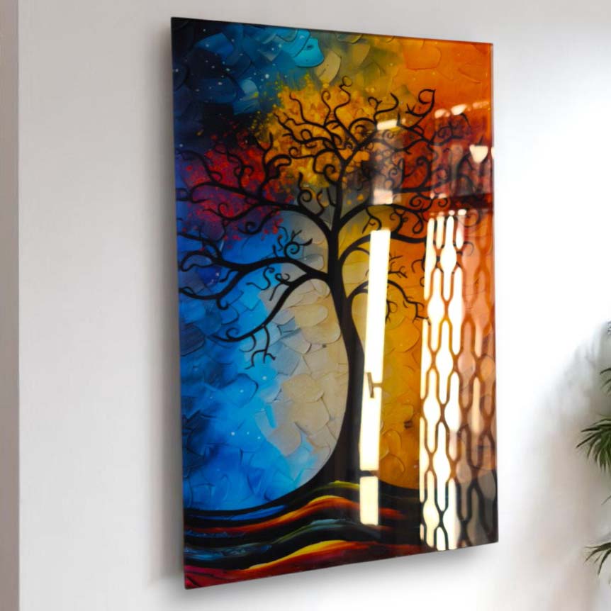 Tree Of Life Velith Vertical Glass Wall Art - Tempered Glass Rectangular Wall Decor
