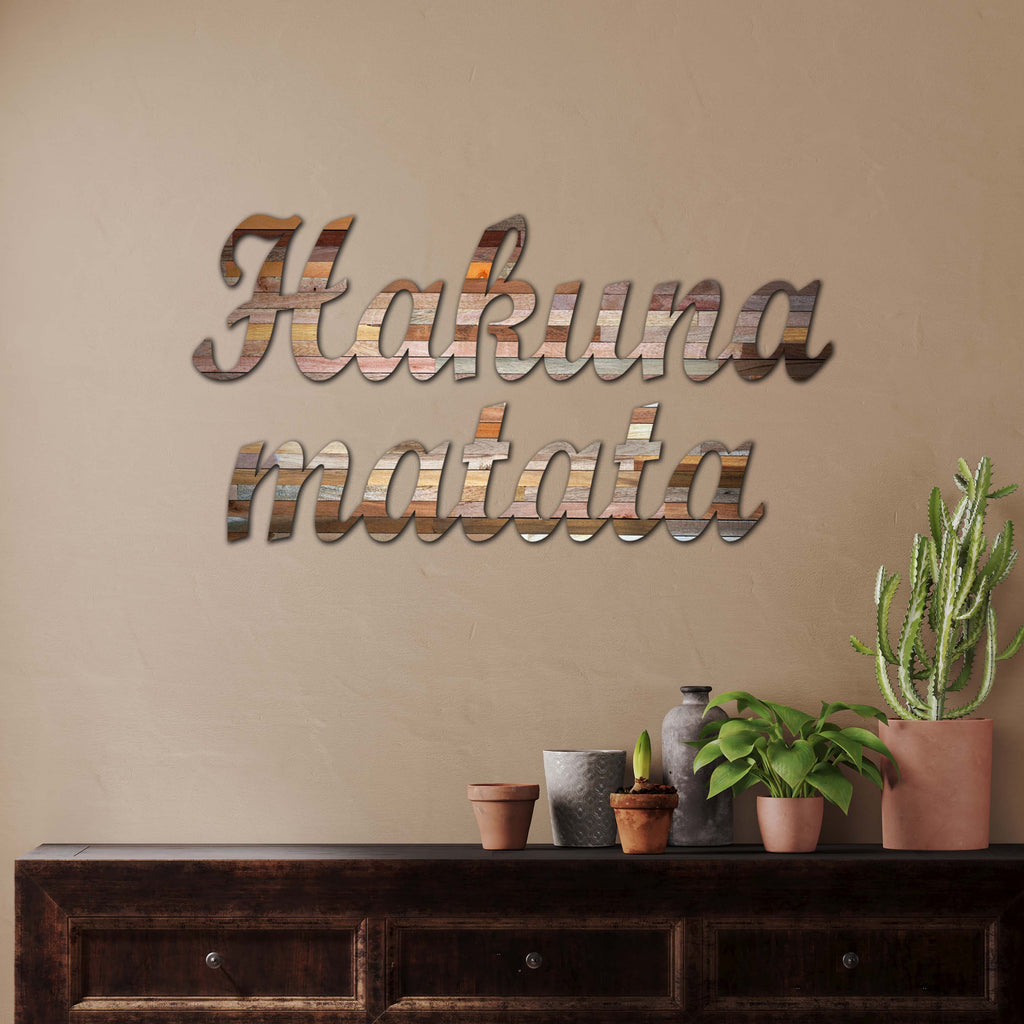 Infuse your home with positivity and a laid-back vibe with this charming "Hakuna Matata" wall sign. Whether you are decorating a nursery, a playroom, or simply want a daily reminder to stress less in your living room, this piece brings a smile to everyone's face.