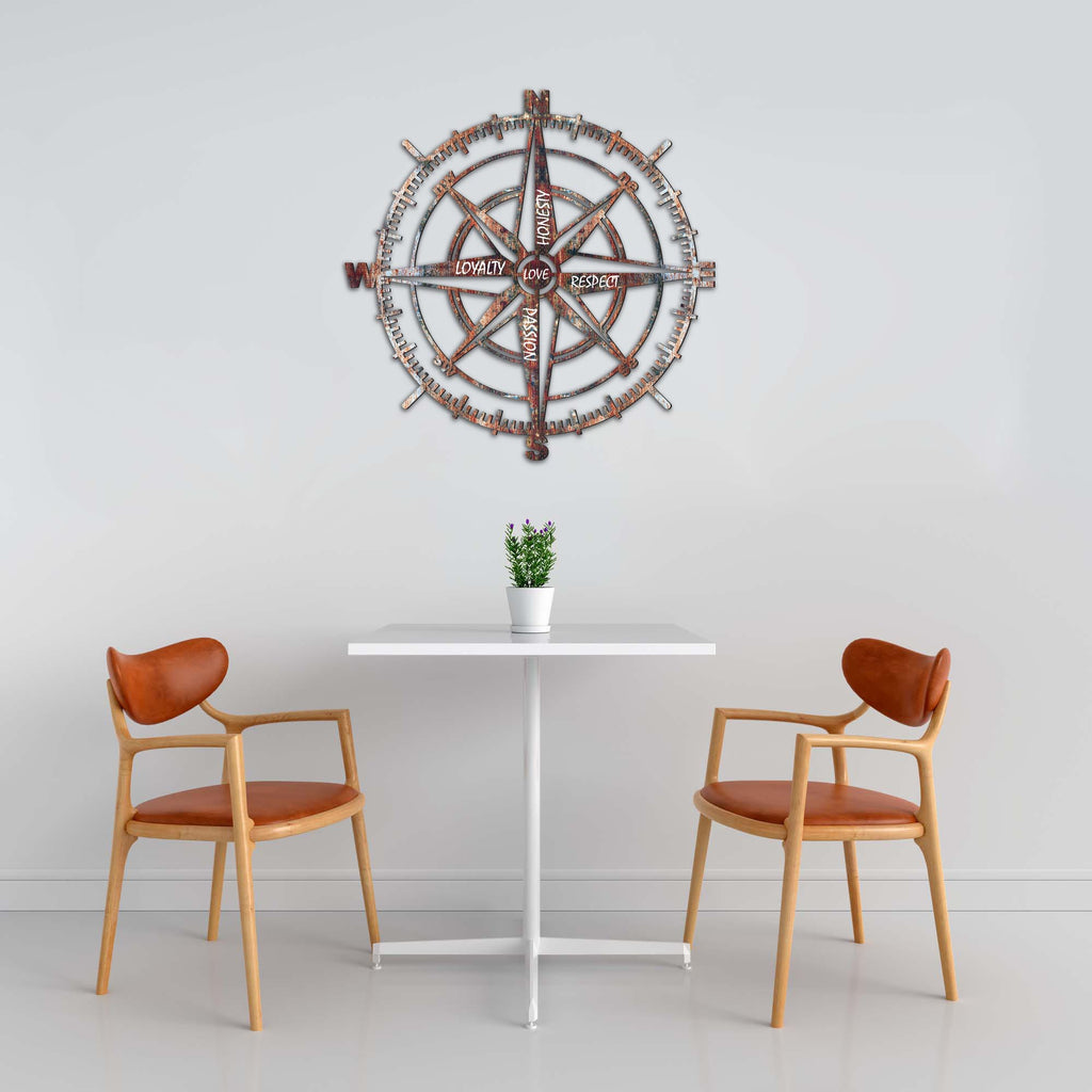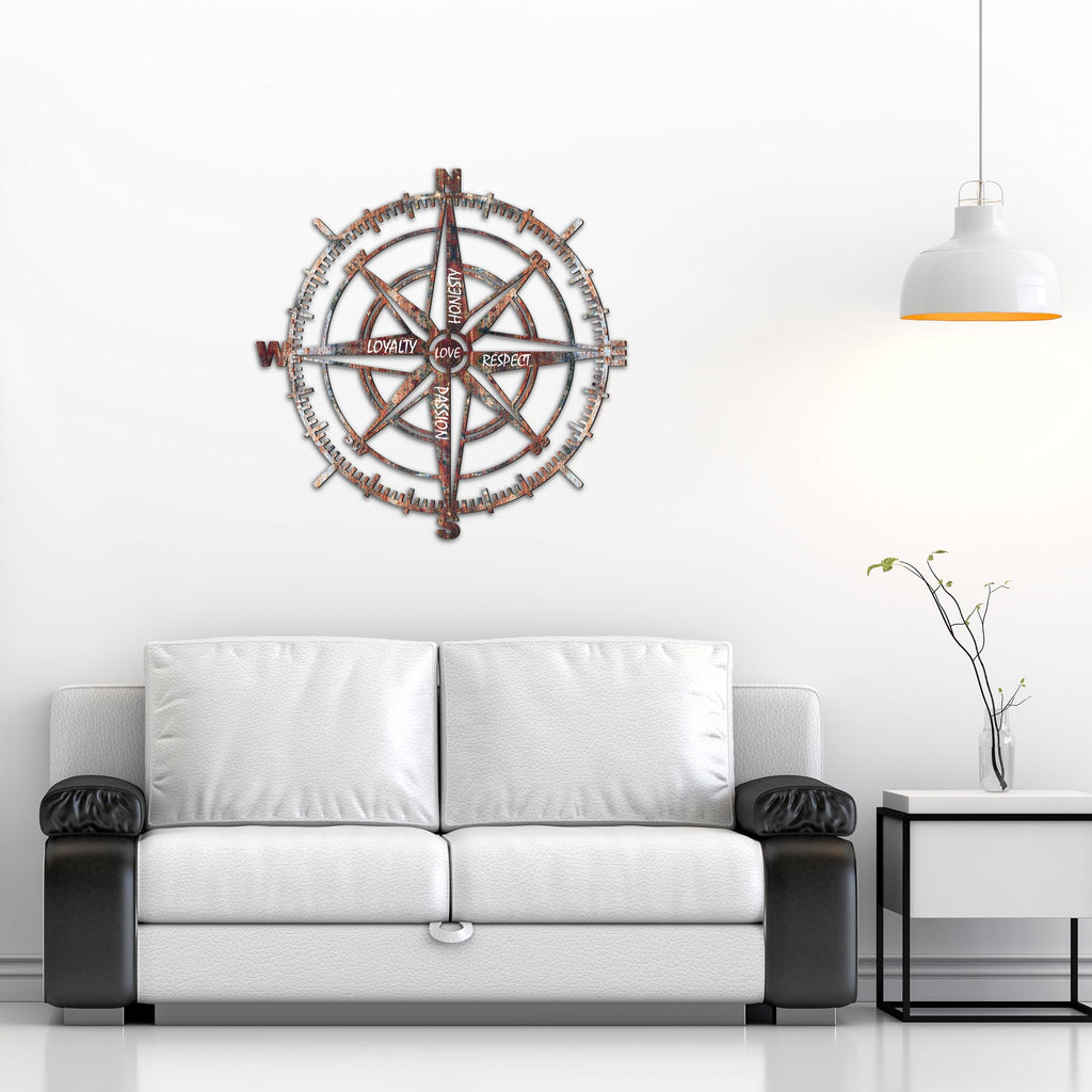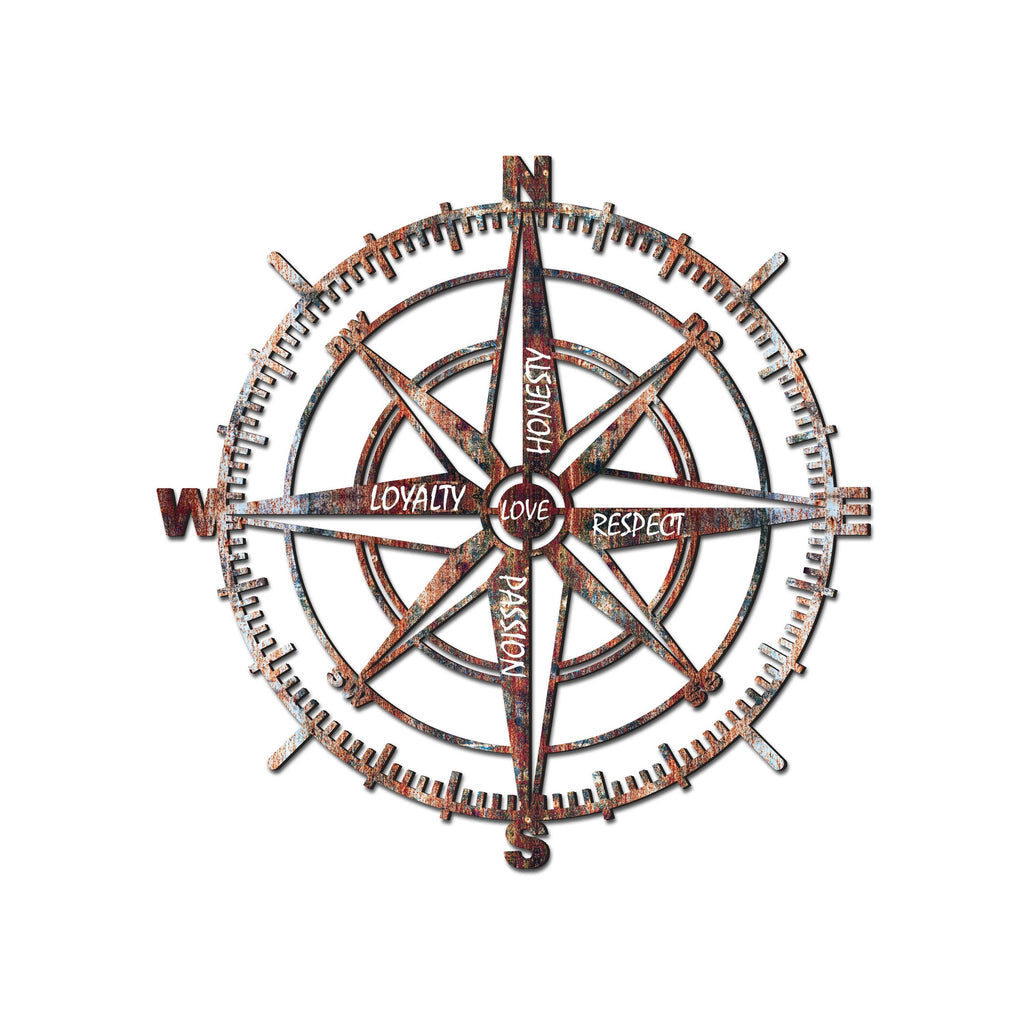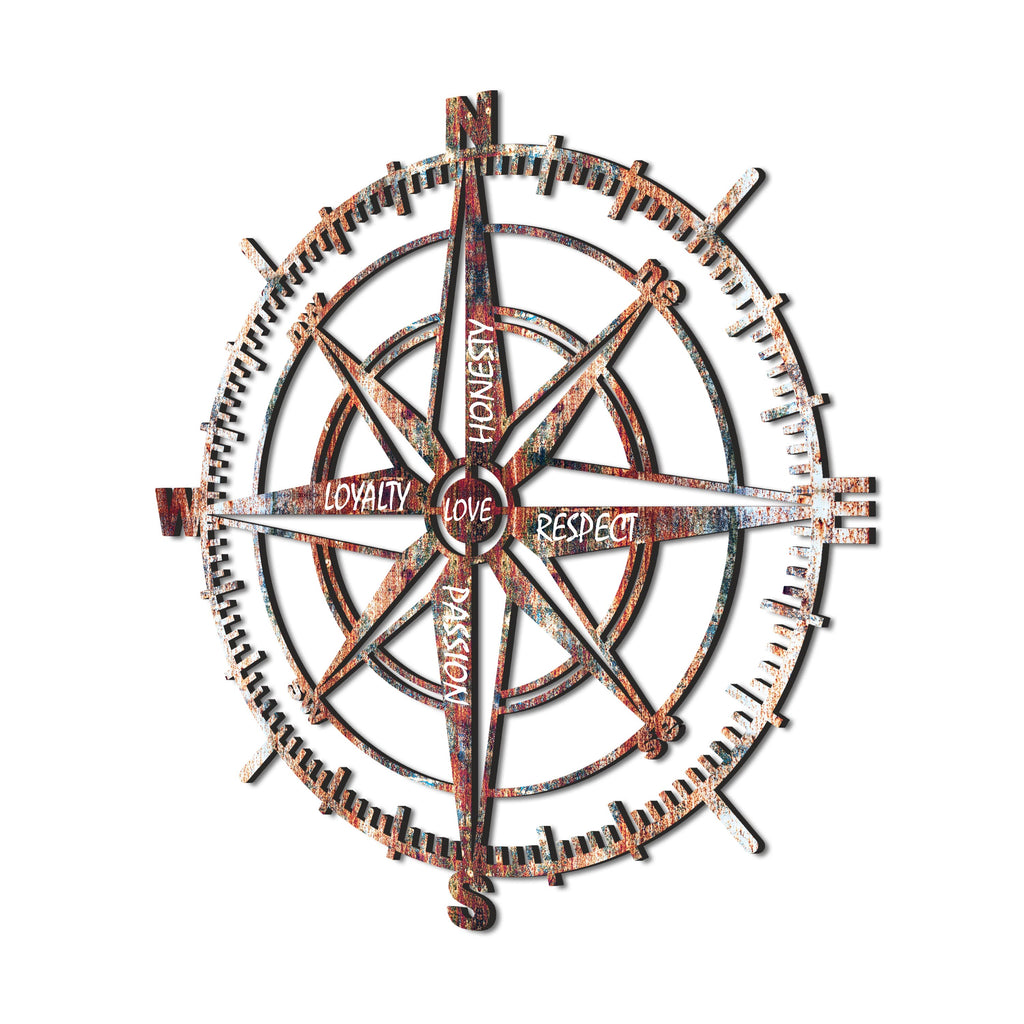 Values Compass Wood Wall Art - "Love" Center with Honesty, Respect, Loyalty, Passion - 10mm Thick Meaningful Decor WR